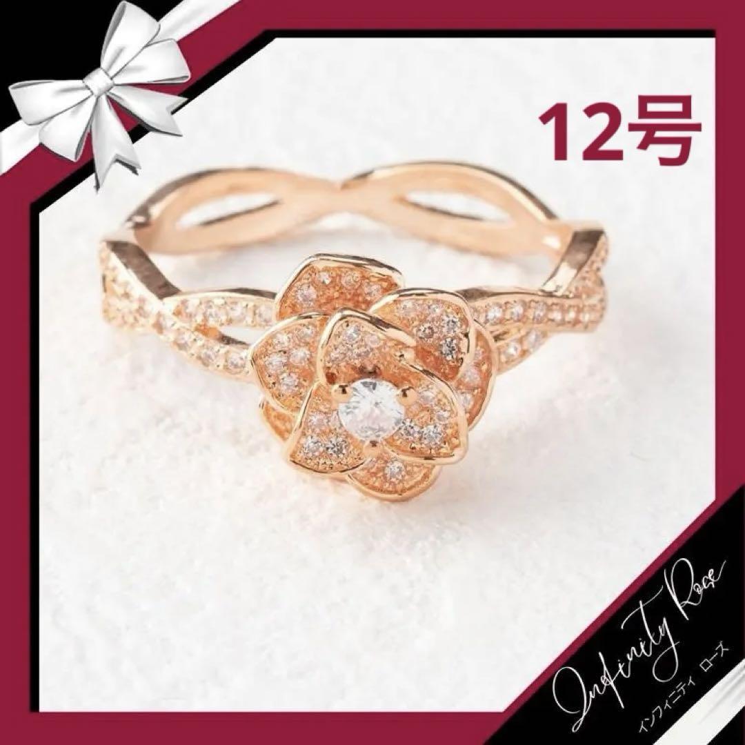 (R007P)12号 ピンクゴールド清楚でロマンティックな大人の薔薇リング 指輪