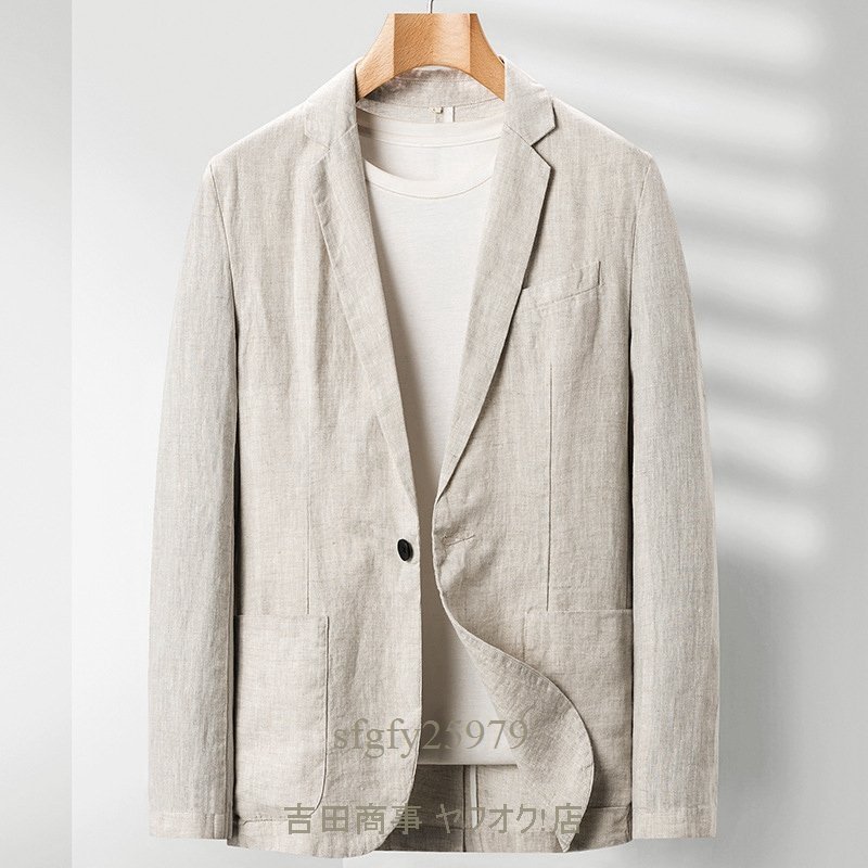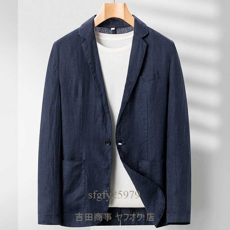 A6512新品入手困難 リネン テーラードジャケット 最高級 麻100% メンズ ブレザー 薄手スーツ 紳士服 センターベンツ 春夏アウター