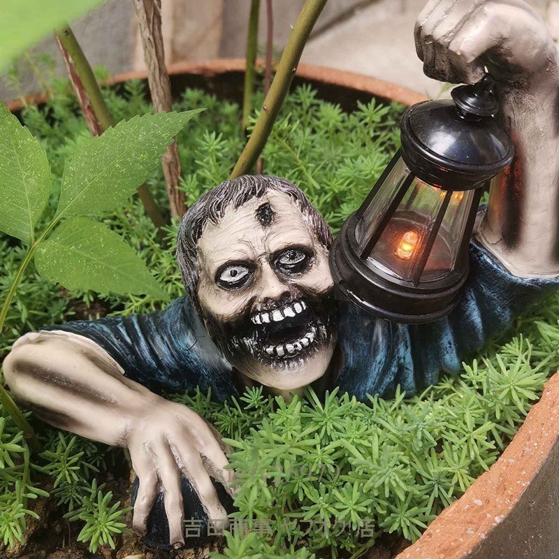 A7718ゾンビ ランタン 庭照明電気 ライト ハロウィン ホラー ガーデン 彫刻 キャンプ アウトドア 怖い ドッキリ ビックリ パーティーグッズ