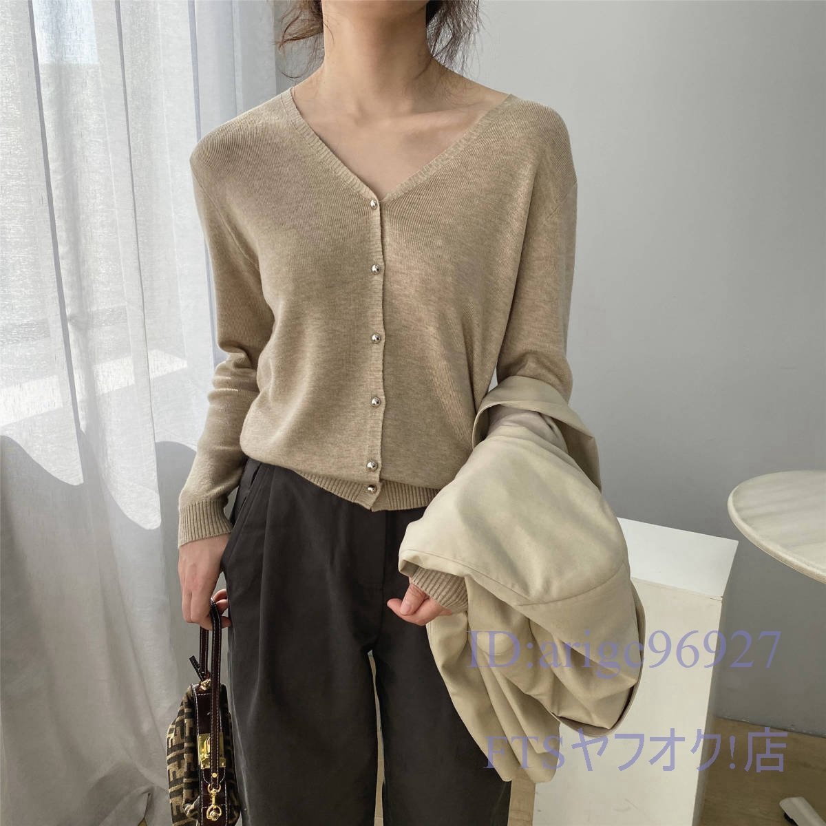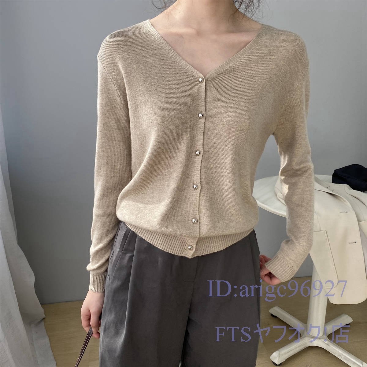 A2047☆新品ニットカーディガンレディース20代30代40代● 極美品 着心地抜群●ウール混 薄手ベージュ