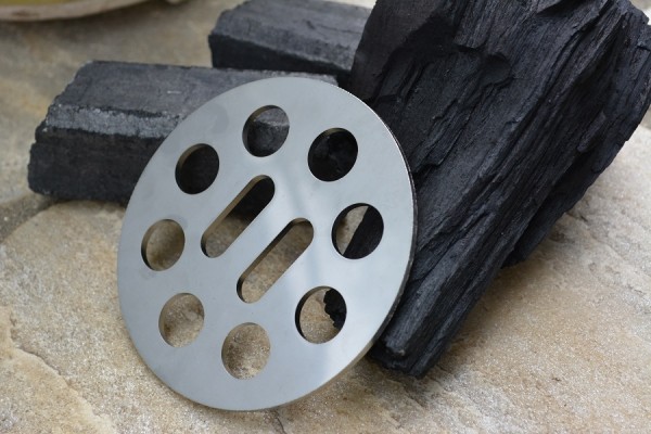 七輪用の火皿(炭床)です。 他サイズ、デザインも可能です。お問い合わせください。 詳細はこちら:http://janne1736.naturum.ne.jp/e2714818.html 石器製火皿と違い、空気の流れを阻害しにくく、 大きめの風穴にて設計したので非常に効率が良い頑丈な設計となっています。 割れた火皿は風を阻害し七輪の効率を落としてしまいます。 (火皿は消耗品です) 着脱はトングを用いて行えます。 仕様 外形φ100 SUS304 t3.0mm | |||