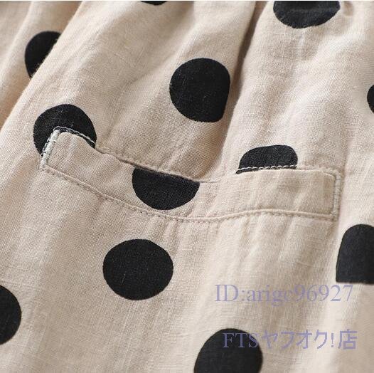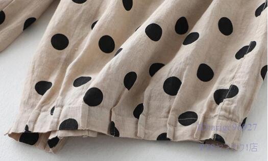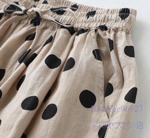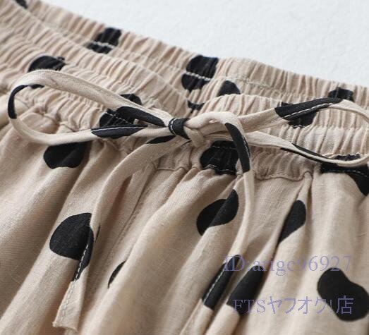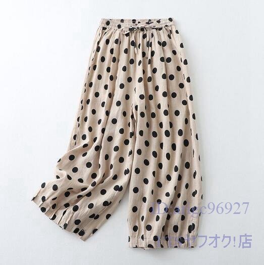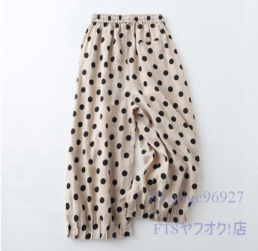 A2593☆新品韓国風春夏 リネンパンツ レディース 水玉柄 綿麻 ボトムス きれいめ ワイドパンツ 大きいサイズ ウエストゴム