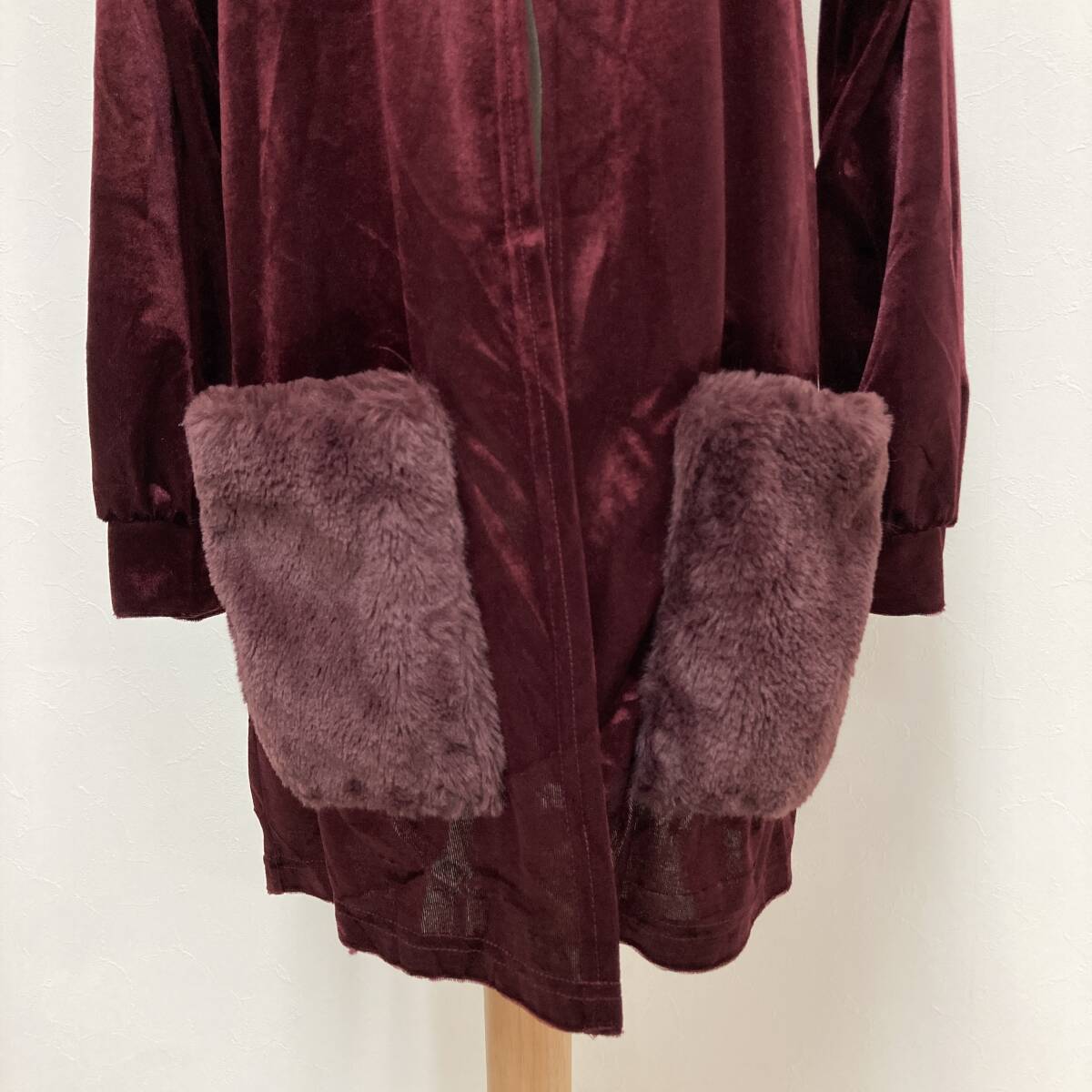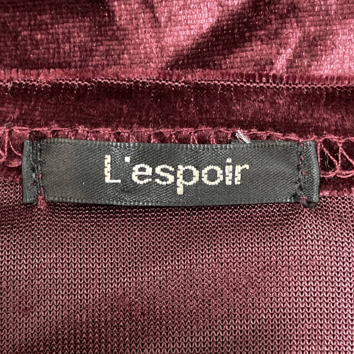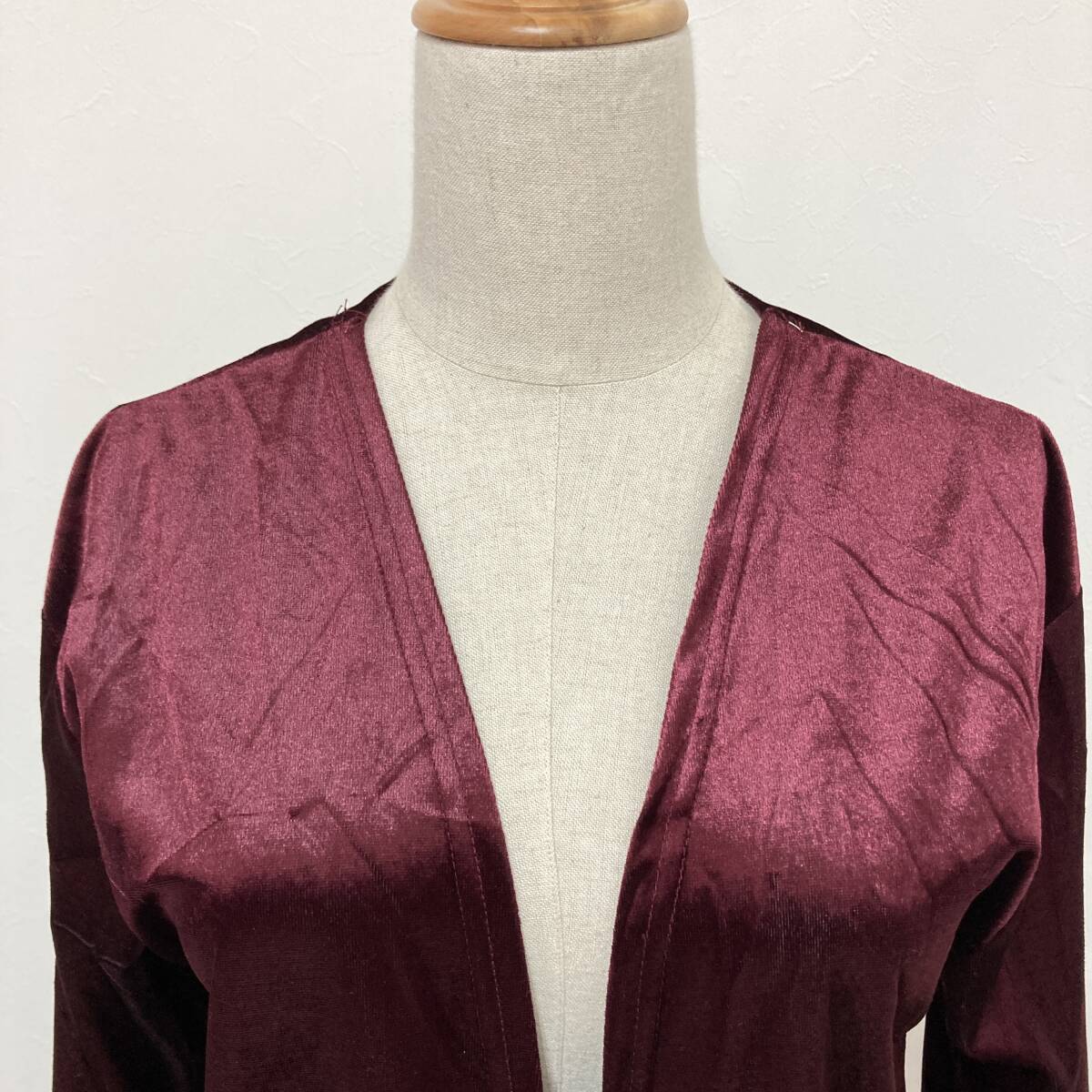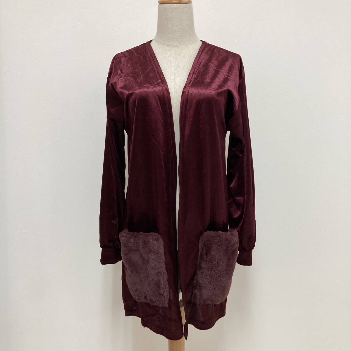 YH0194 Lespoir レスポワール レディース カーディガン 長袖 ベロア調 薄手 M ワインレッド シック ポケット エレガントガーリーチック
