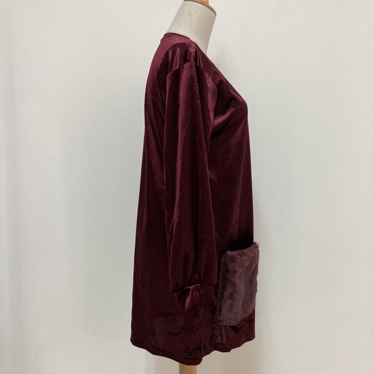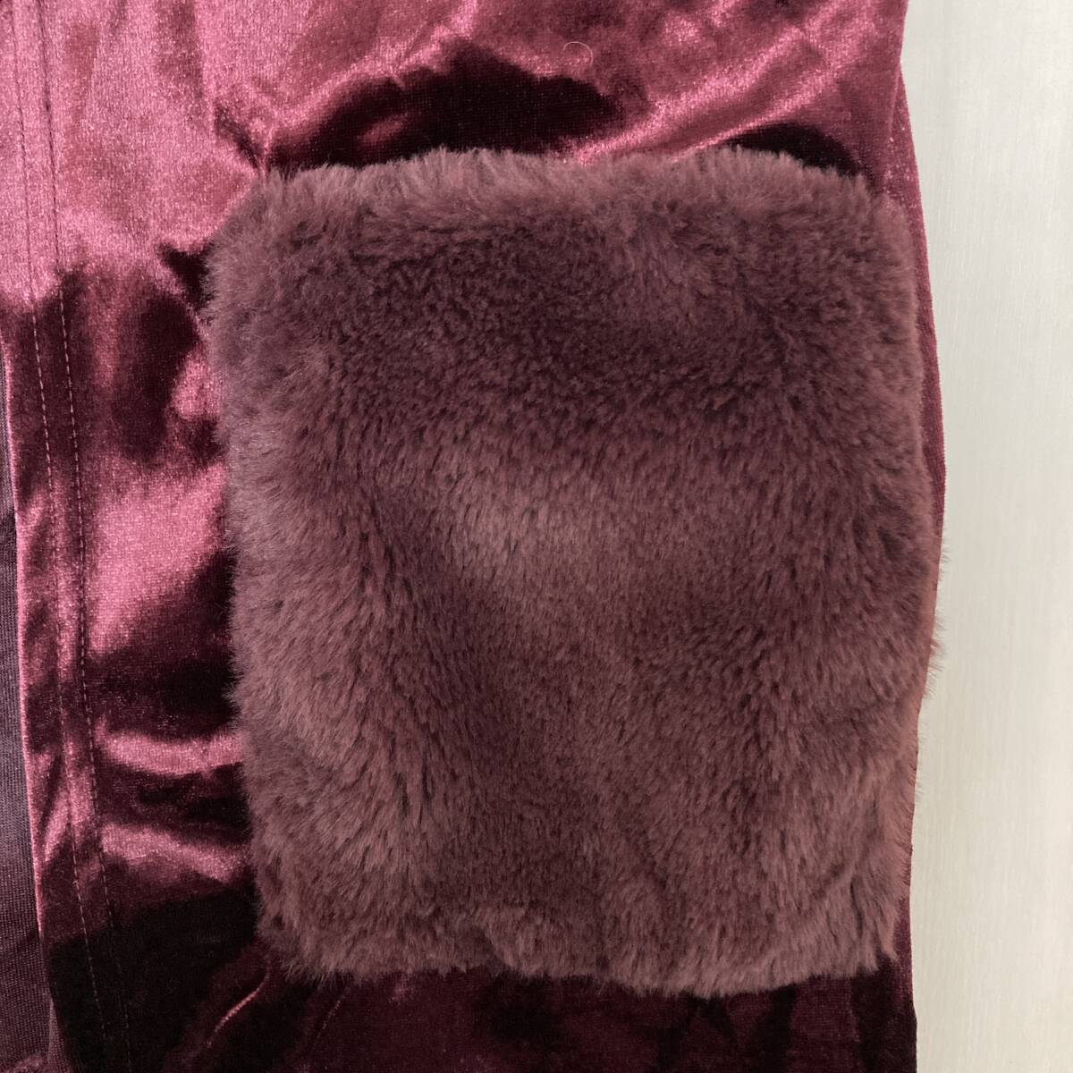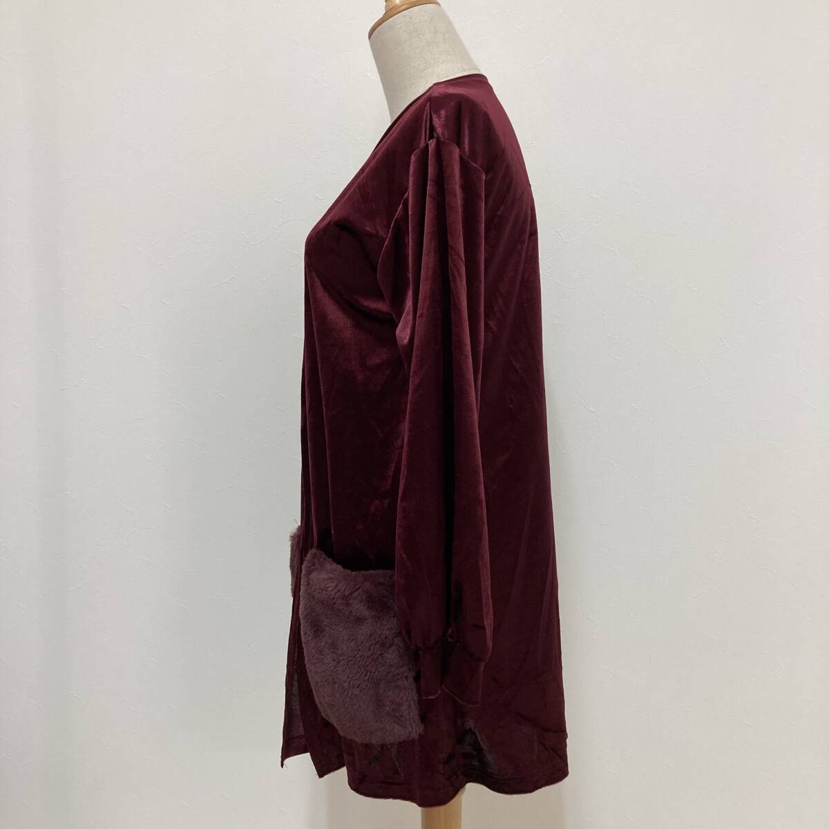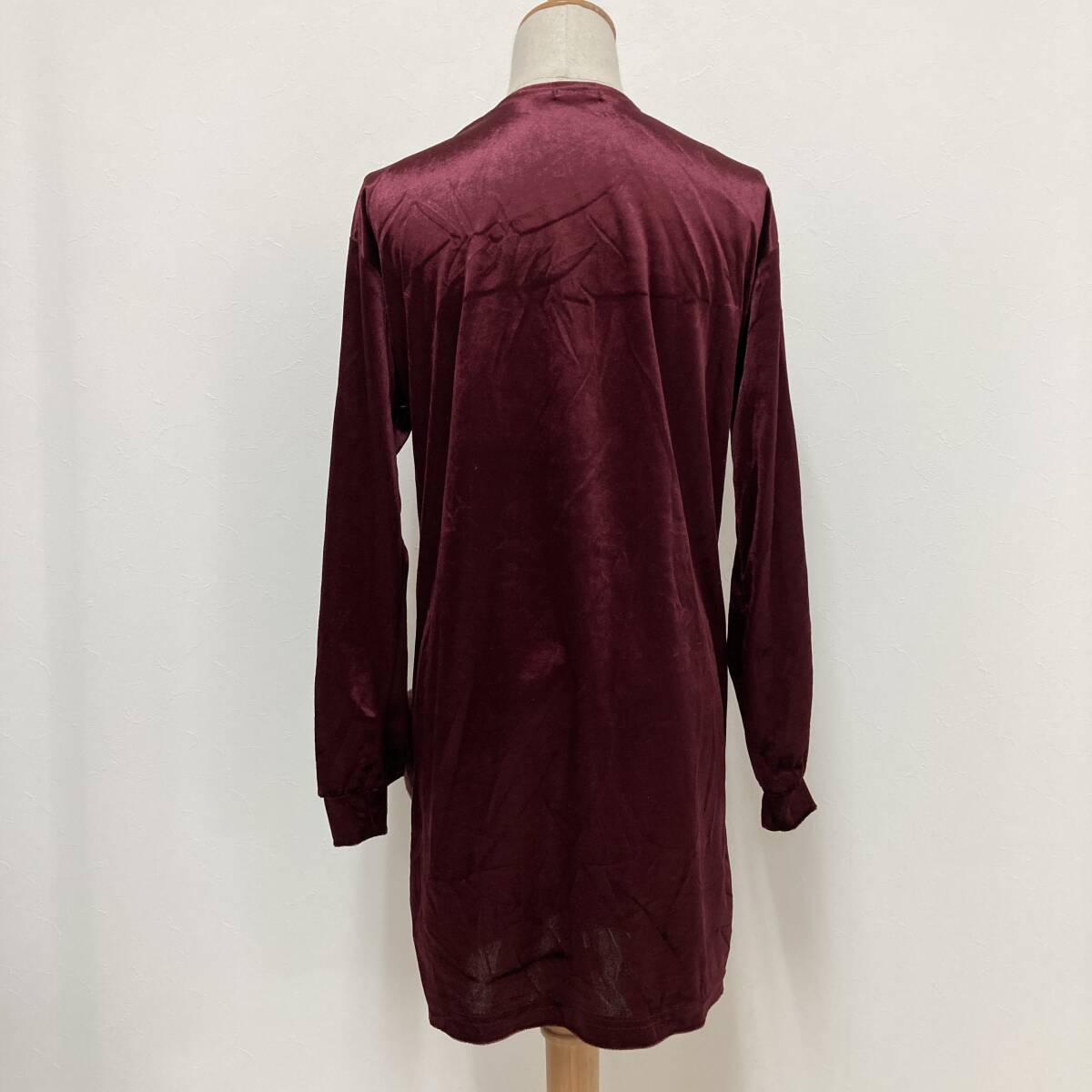 YH0194 Lespoir レスポワール レディース カーディガン 長袖 ベロア調 薄手 M ワインレッド シック ポケット エレガントガーリーチック