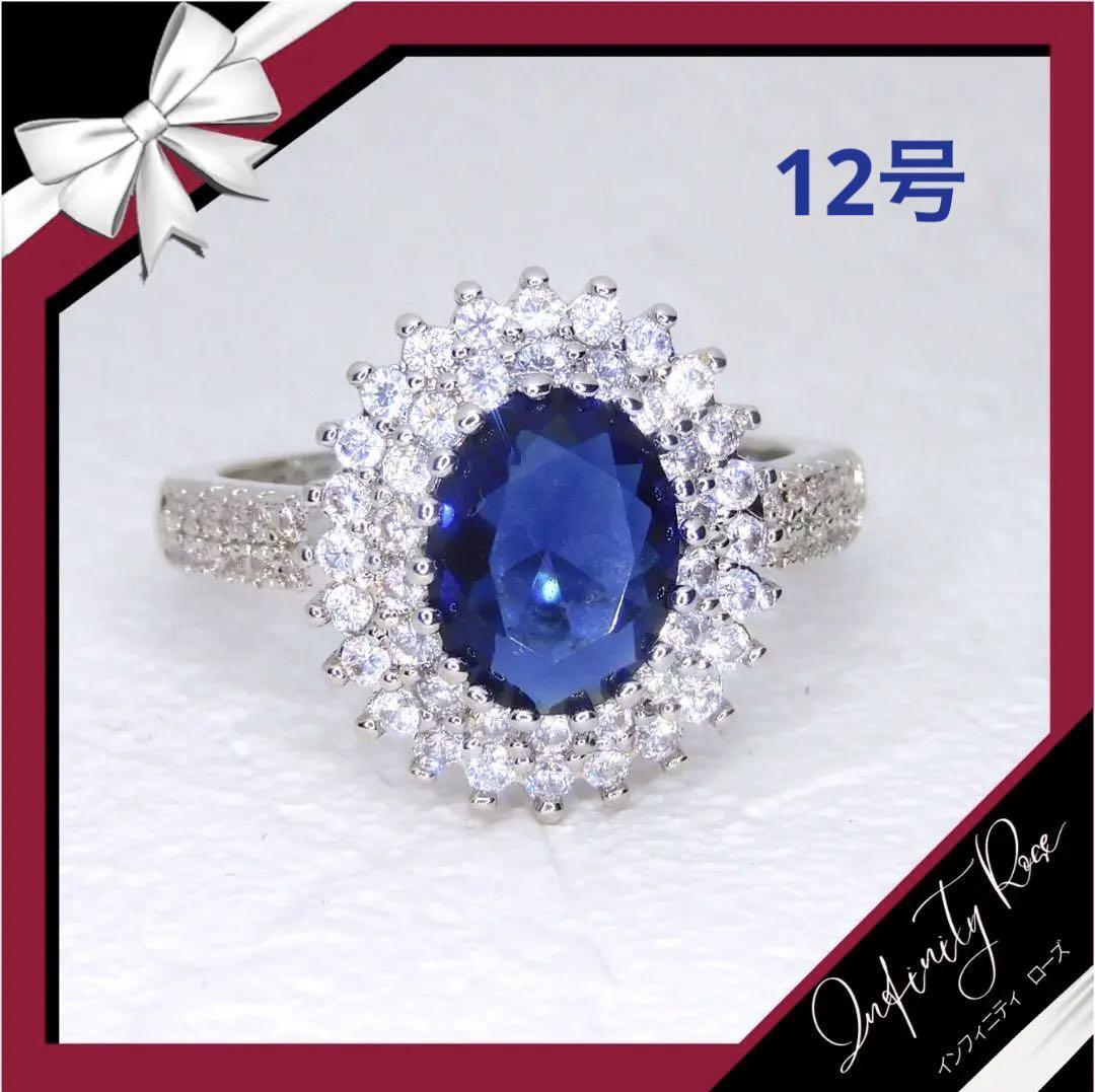 (R056S)12号 素敵すぎるゴージャスなラウンドブルーリング 爪留指輪