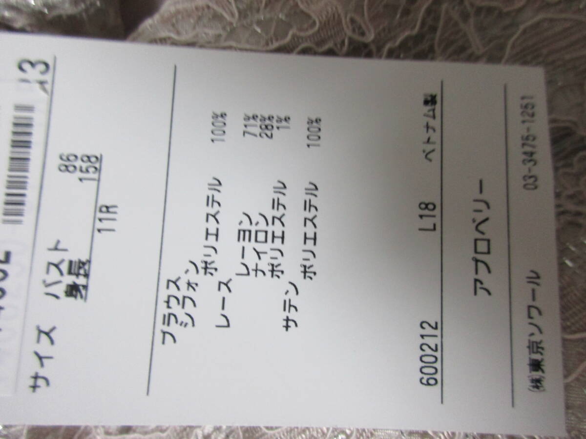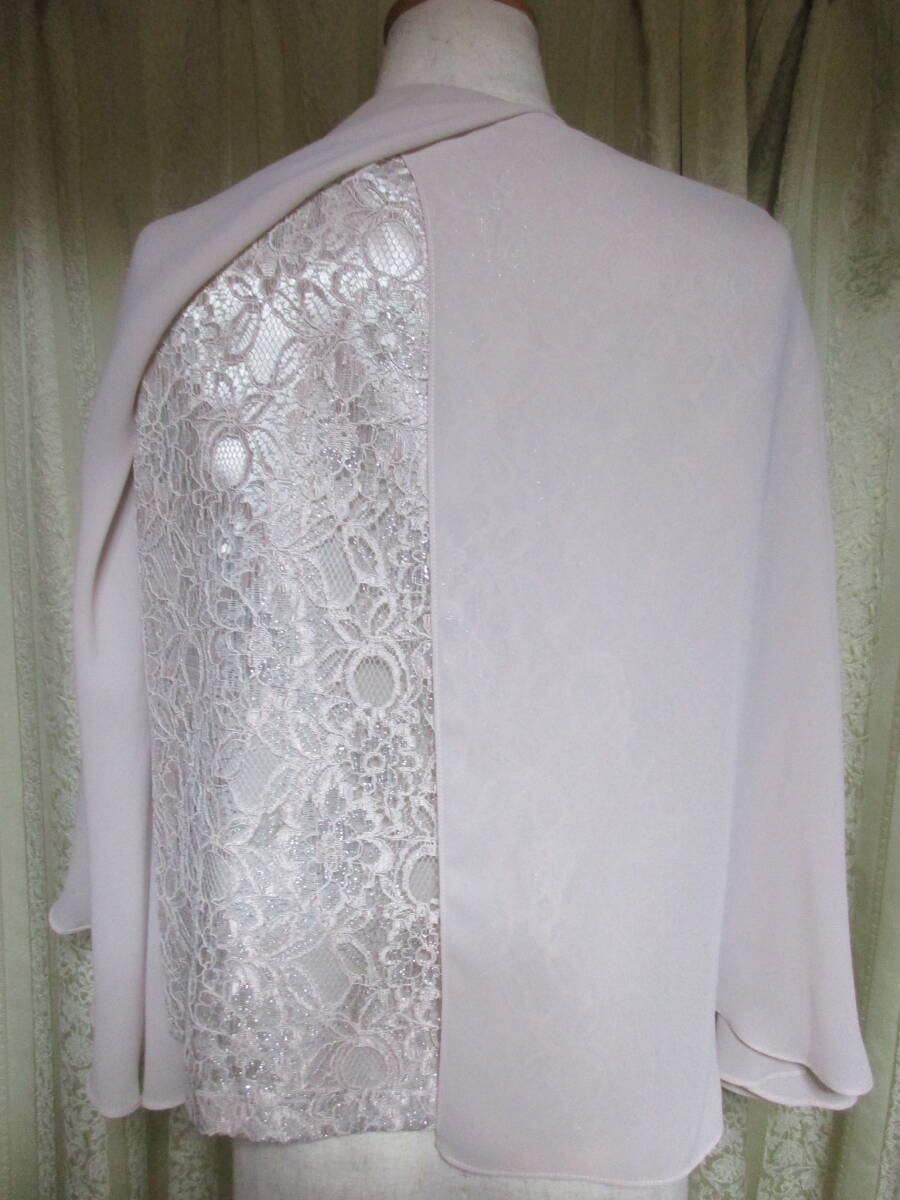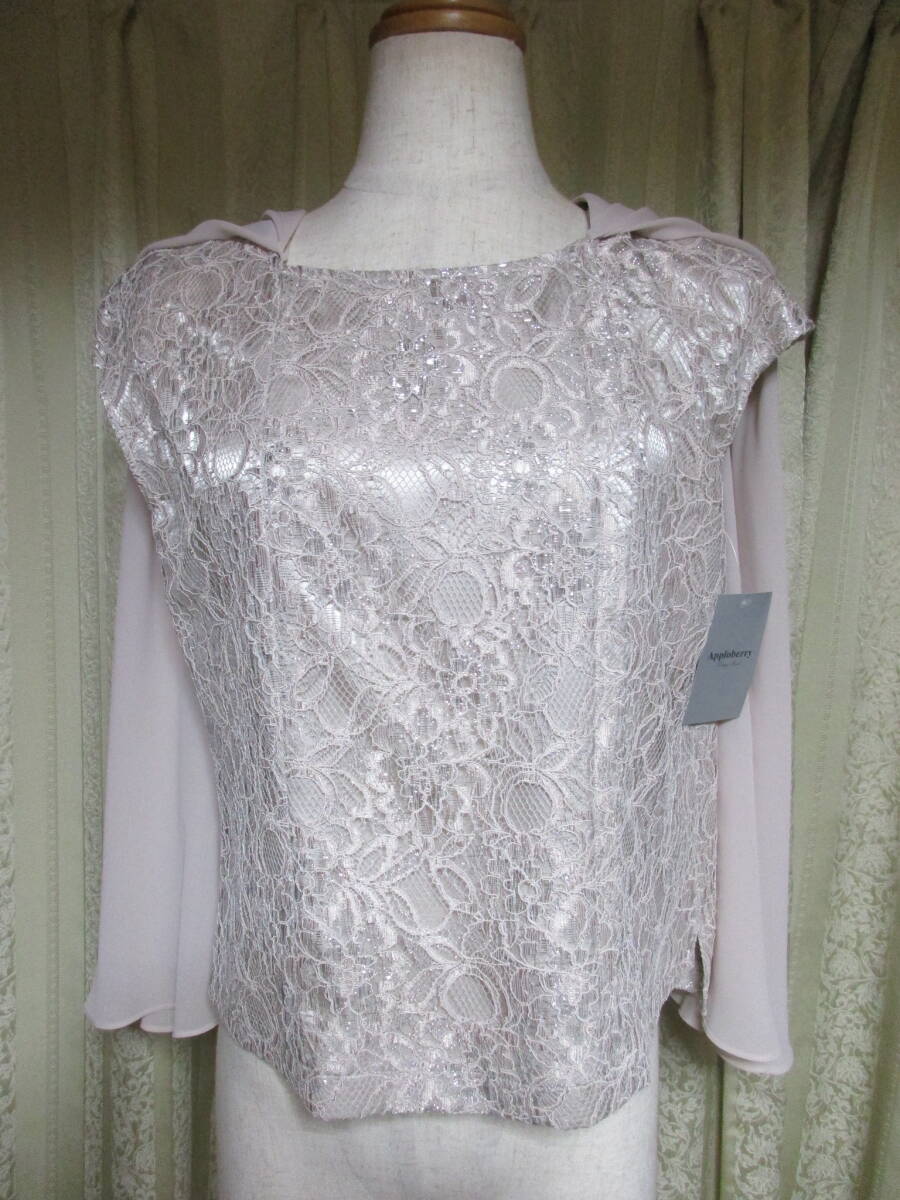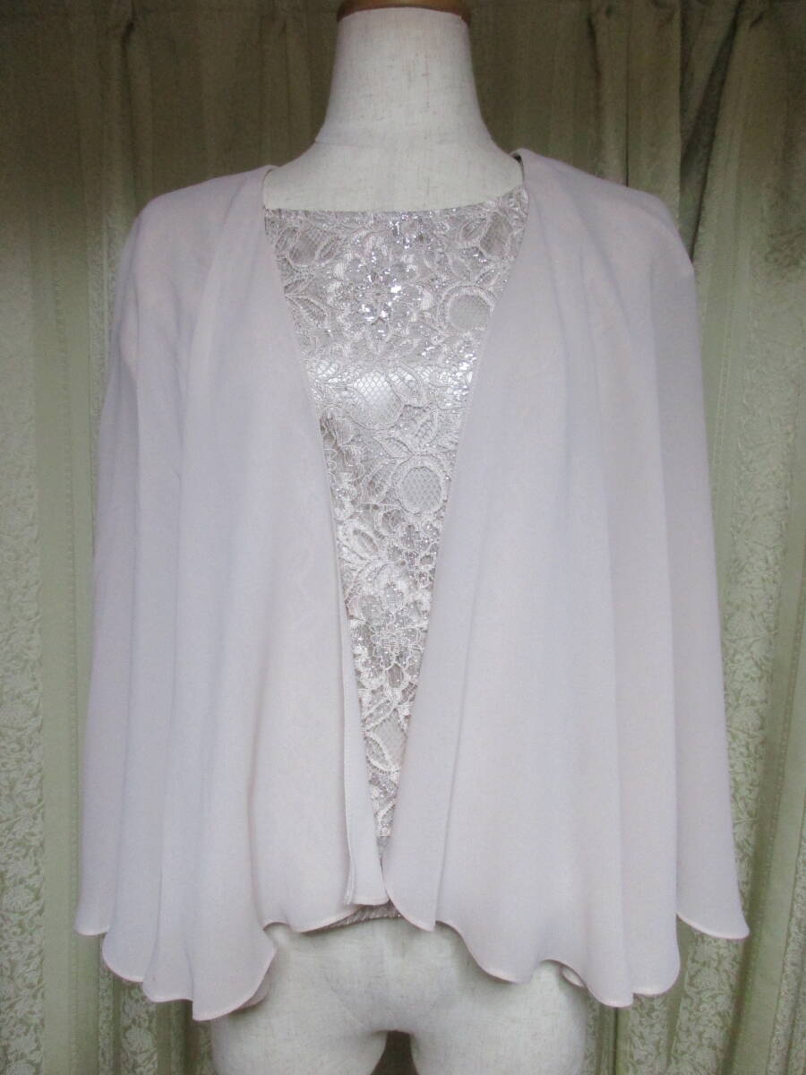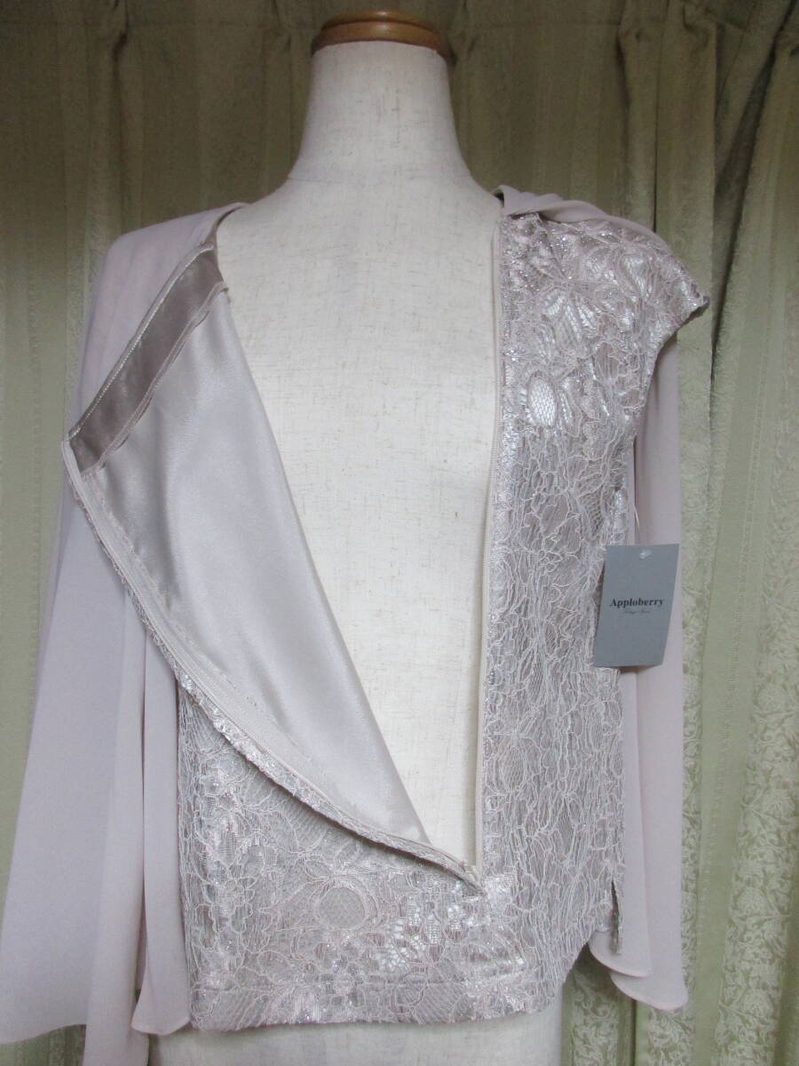 即決 タグ付き未使用 アプロベリー カラーフォーマル 11号 ケープ付き レース 薄いピンク 銀ラメ 東京ソワール