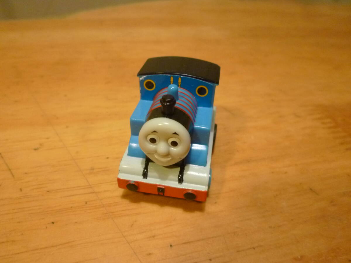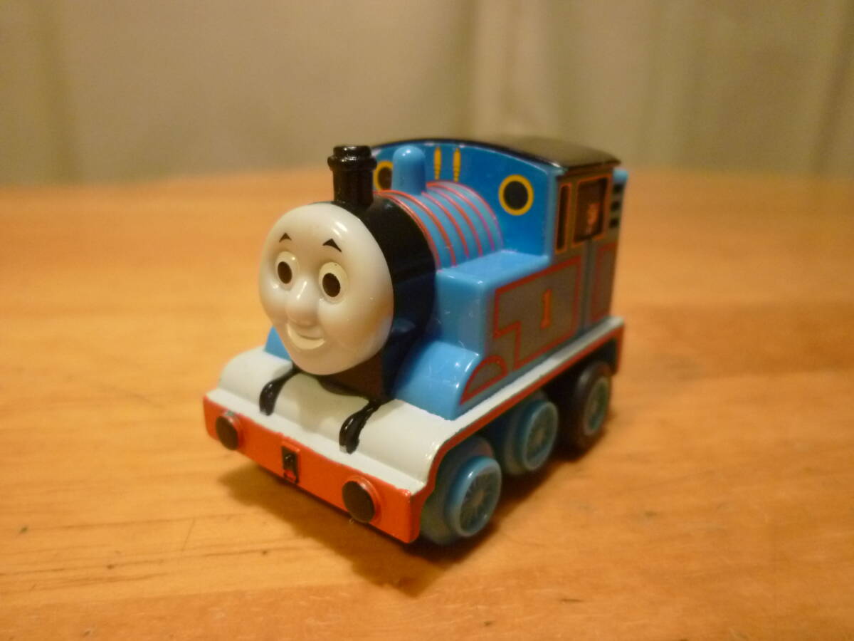 こちらはお子様が大好きな機関車トーマスで、小さなチヨロQトーマスになります。後ろに引いて離すとかなりのスピードで勢いよく走ります。