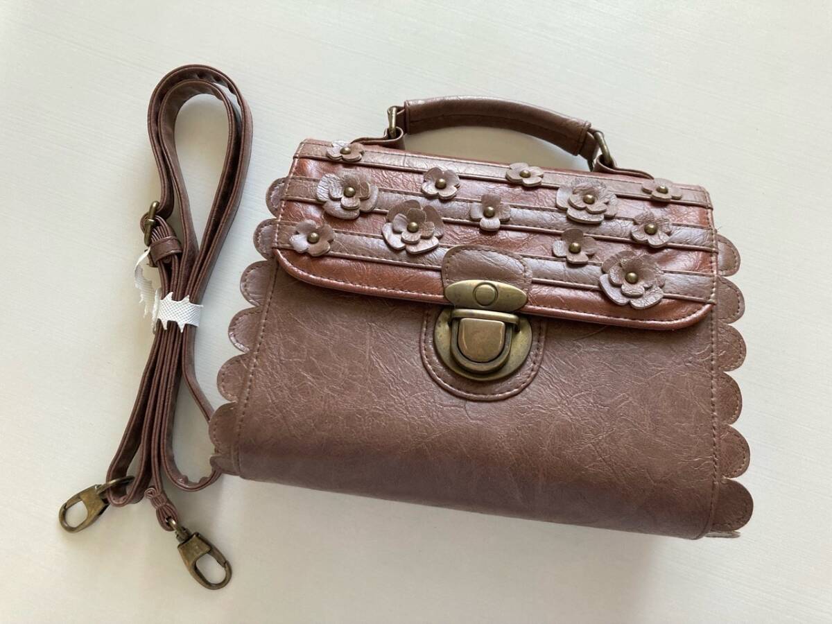 axes femme 立体お花付きバッグ★アクシーズファム 茶色 クラシック ロリータ フェミニン 鞄 カバン フリル
