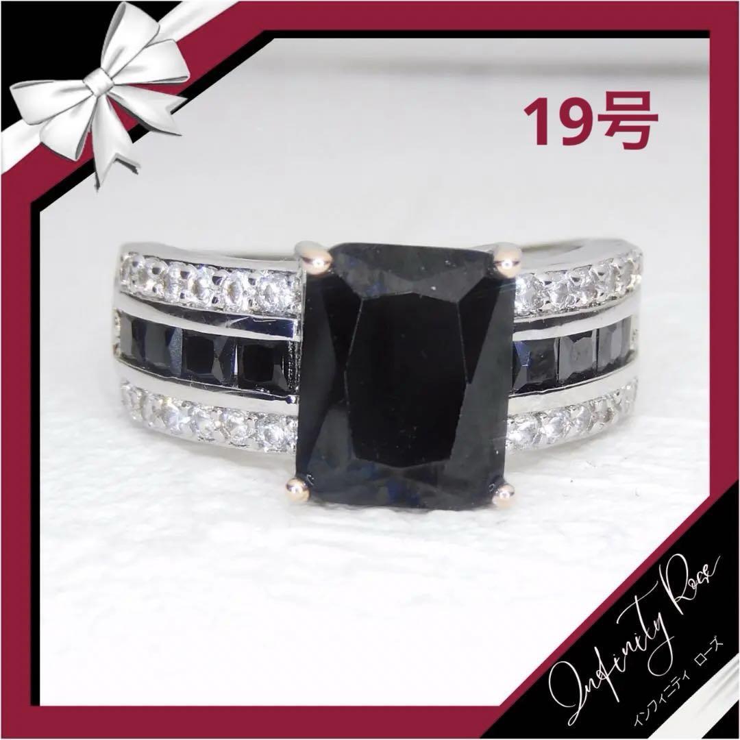 (R047SK)19号 ブラック豪華煌めく華やかゴージャスワイドリング 指輪