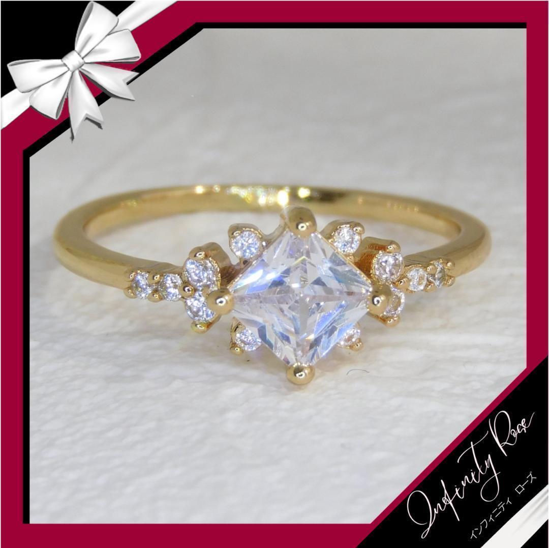 (R049S)17号 シルバースクエアオーロラクリスタルリング 高価爪留 指輪