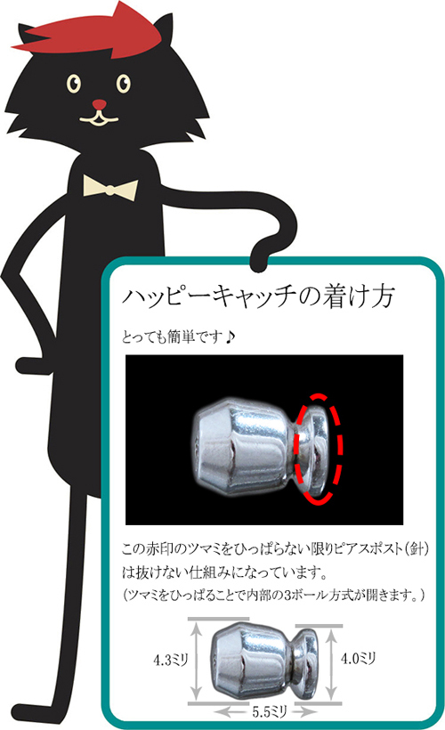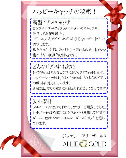 ピアス用キャッチ『ハッピーキャッチ』シルバーカラー(片耳用・シングル) |