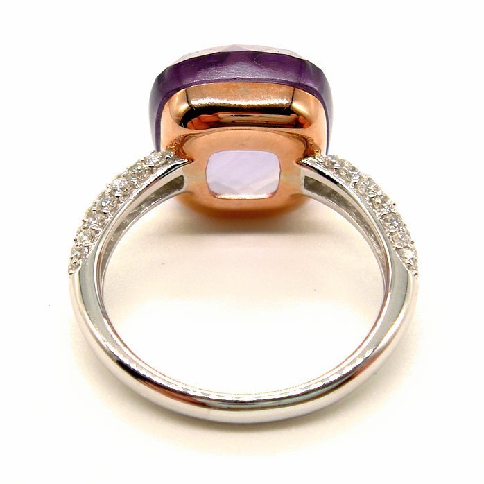 R906:K18WG/PG アメジスト ダイヤ リング(#13)