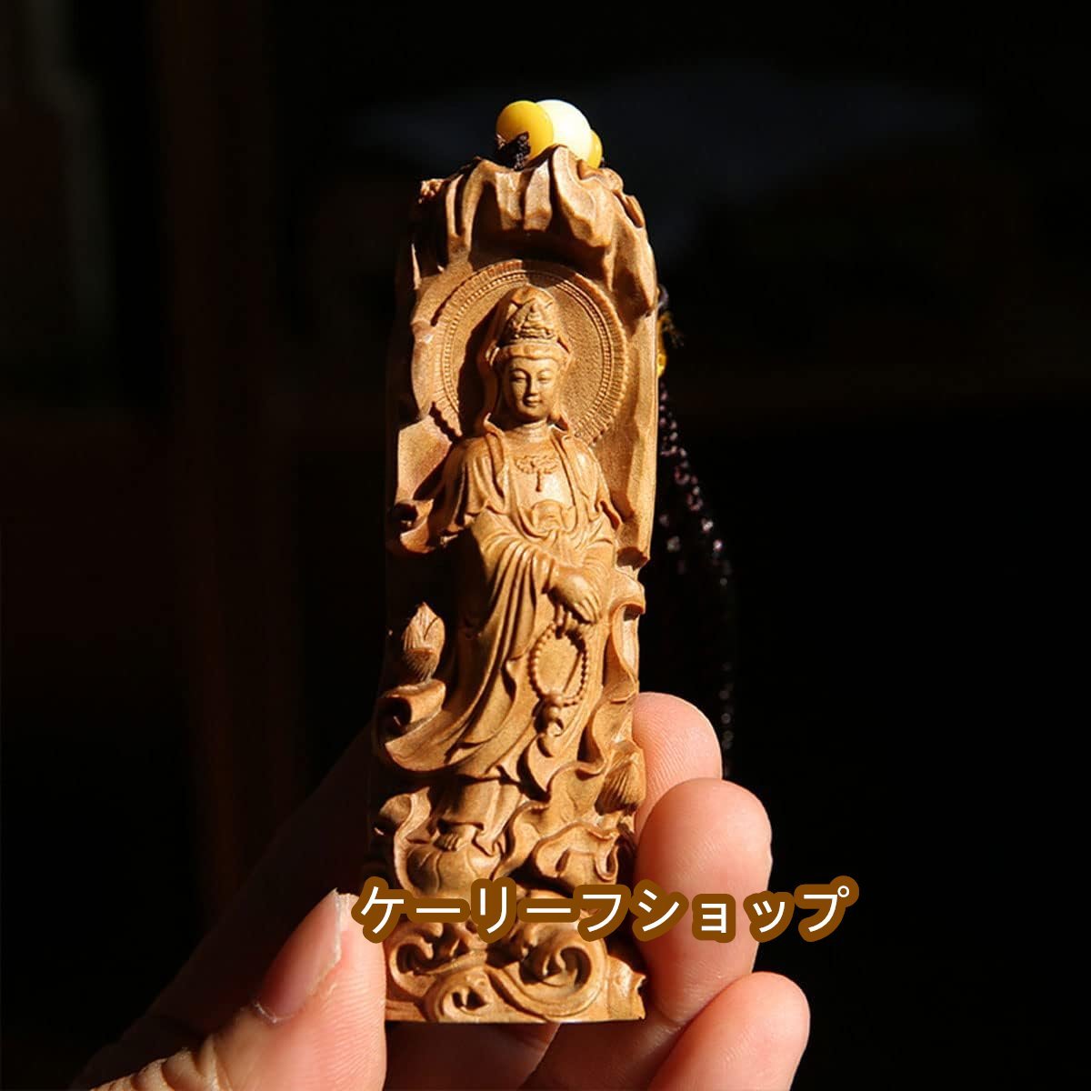 【ケーリーフショップ】観音像 風水 観音菩薩 木彫り オーストラリア 白檀 香木 木製彫刻 仏像 お守り 9cm 厄除け 開運 風水 縁起物