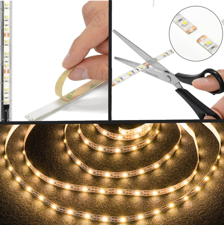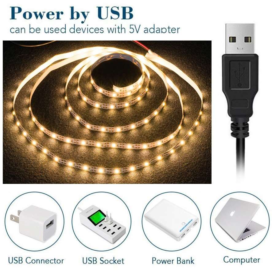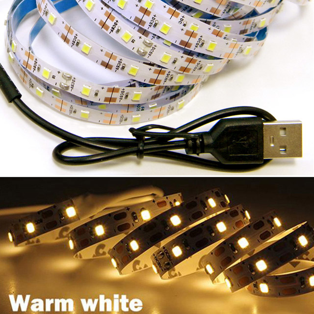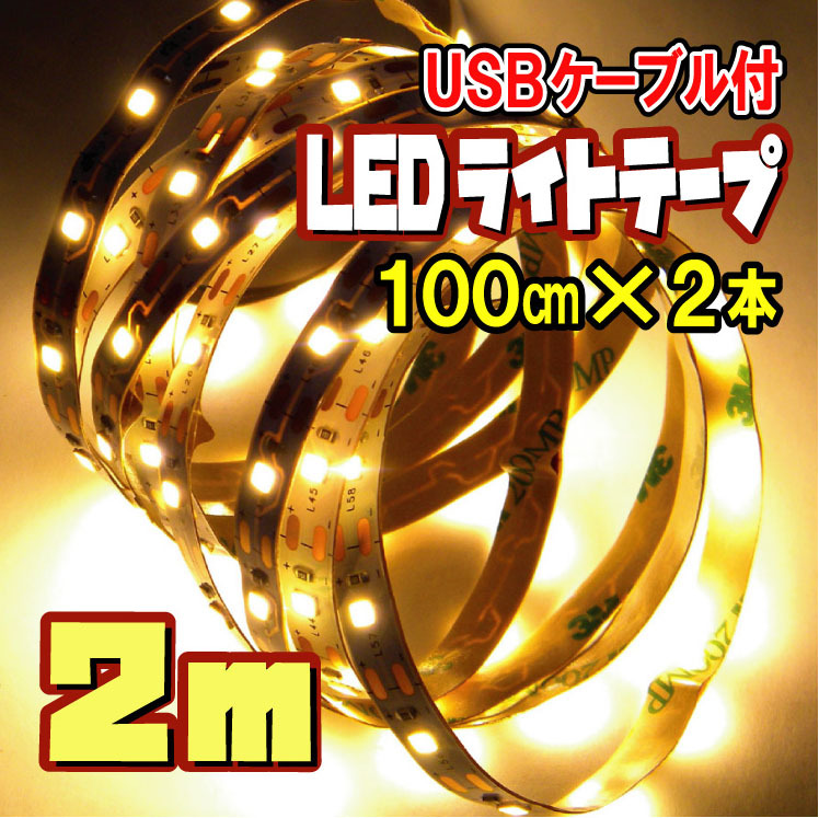 ★ LED テープ ライト ★ [ 1メートル×2本]USBケーブル付 ☆ 間接照明 切断可 裏面テープ / 電球色 【匿名配送・無料】☆