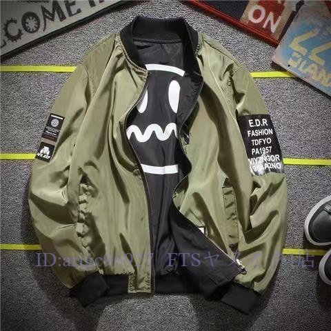 A5114☆新品大人気 秋冬 ジャケット リバーシブル ミリタリージャケット 無地 ブルゾン ジャンパー 男女兼用 緑 3色 XLサイズ以上