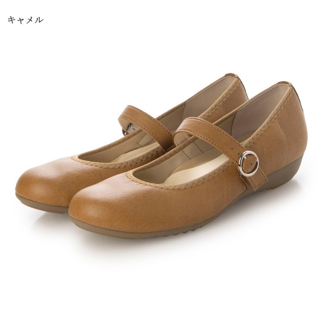 シンプルな丸みのある木型が可愛いのコンフォートフラットパンプス。