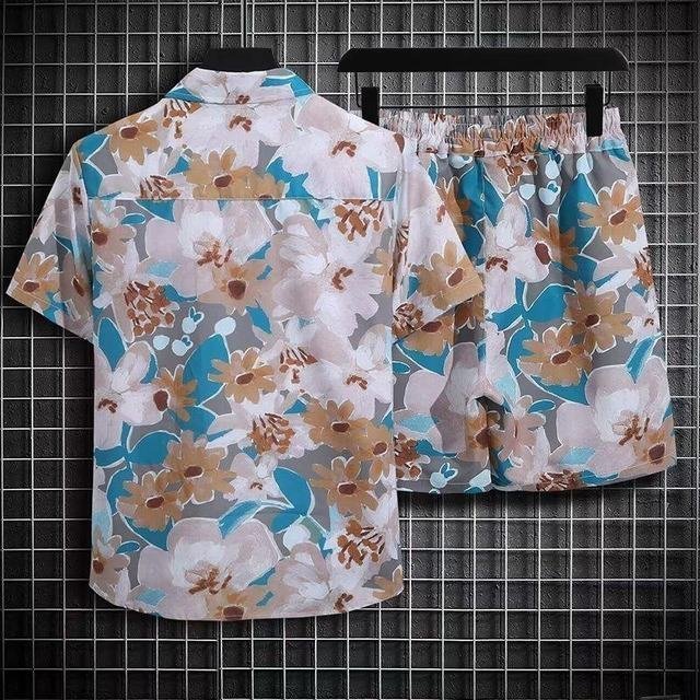 夏 薄 オシャレ ハーフパンツ セットアップ メンズ 上下2点セット ジャージ アロハシャツ 半袖シャツ E L