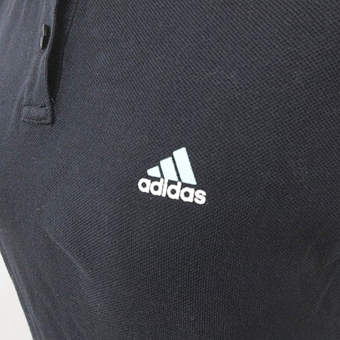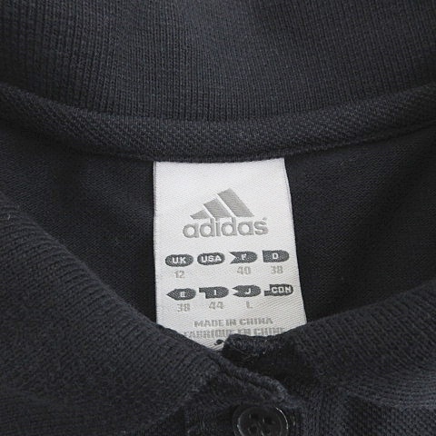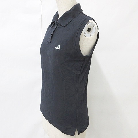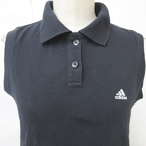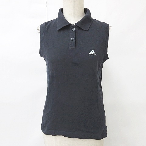 アディダス adidas スポーツ ポロシャツ ノースリーブ リブ 鹿の子 綿 黒 ブラック L レディース