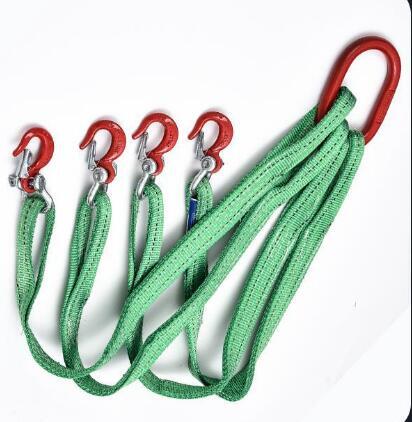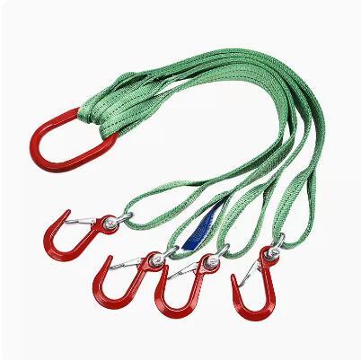 上質工事用材料運搬作業用ベルトスリング 4点吊りスリングベルト 合金鋼製フック付き リング付き ポリエステル製 最大使用荷重3t 長さ1M