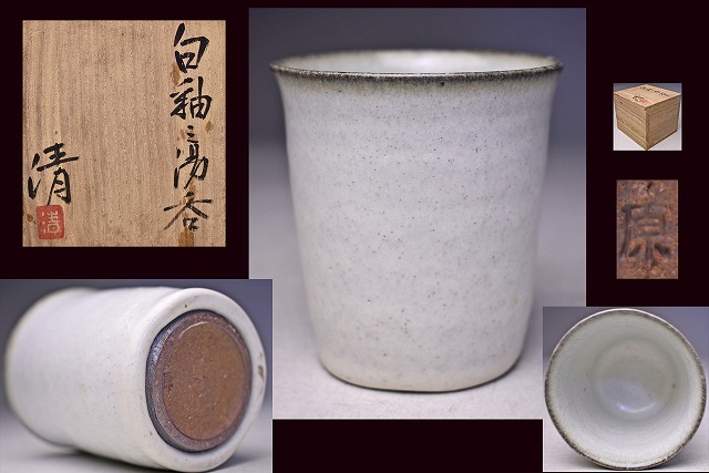 サイズは 80mmx高さ86mm です。 人間国宝 の 原清 氏の 作品です。 藁灰釉使用の お湯のみです。 箱に汚れがあります。宅配便60サイズにて発送します。 他にも多数出品してます。同梱対応いたします。