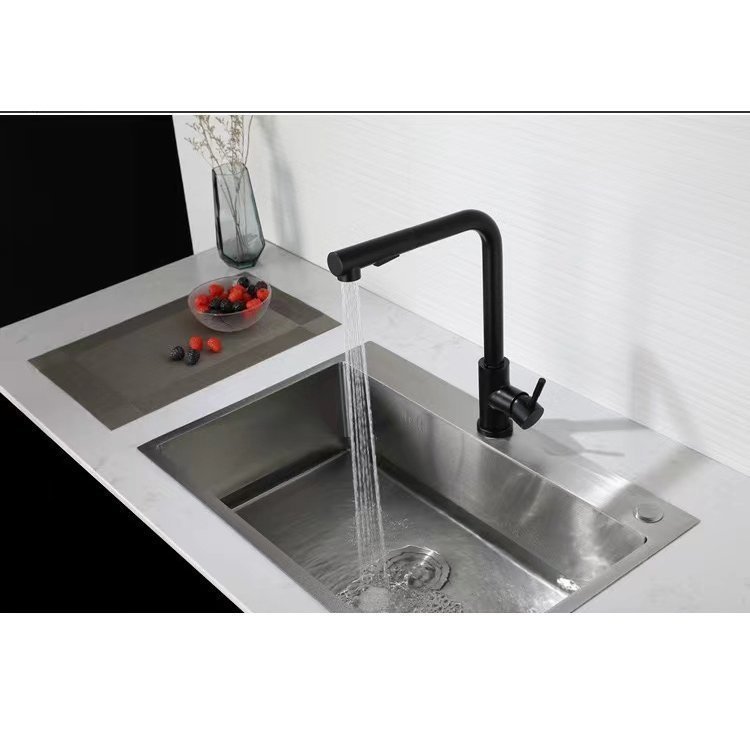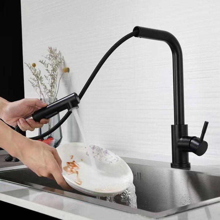 キッチン用蛇口 混合水栓 台所蛇口 シャワー 冷熱水対応 混合水栓 60cmホース付 引き出し式 シングル レバー混合栓 ブラック MAY492