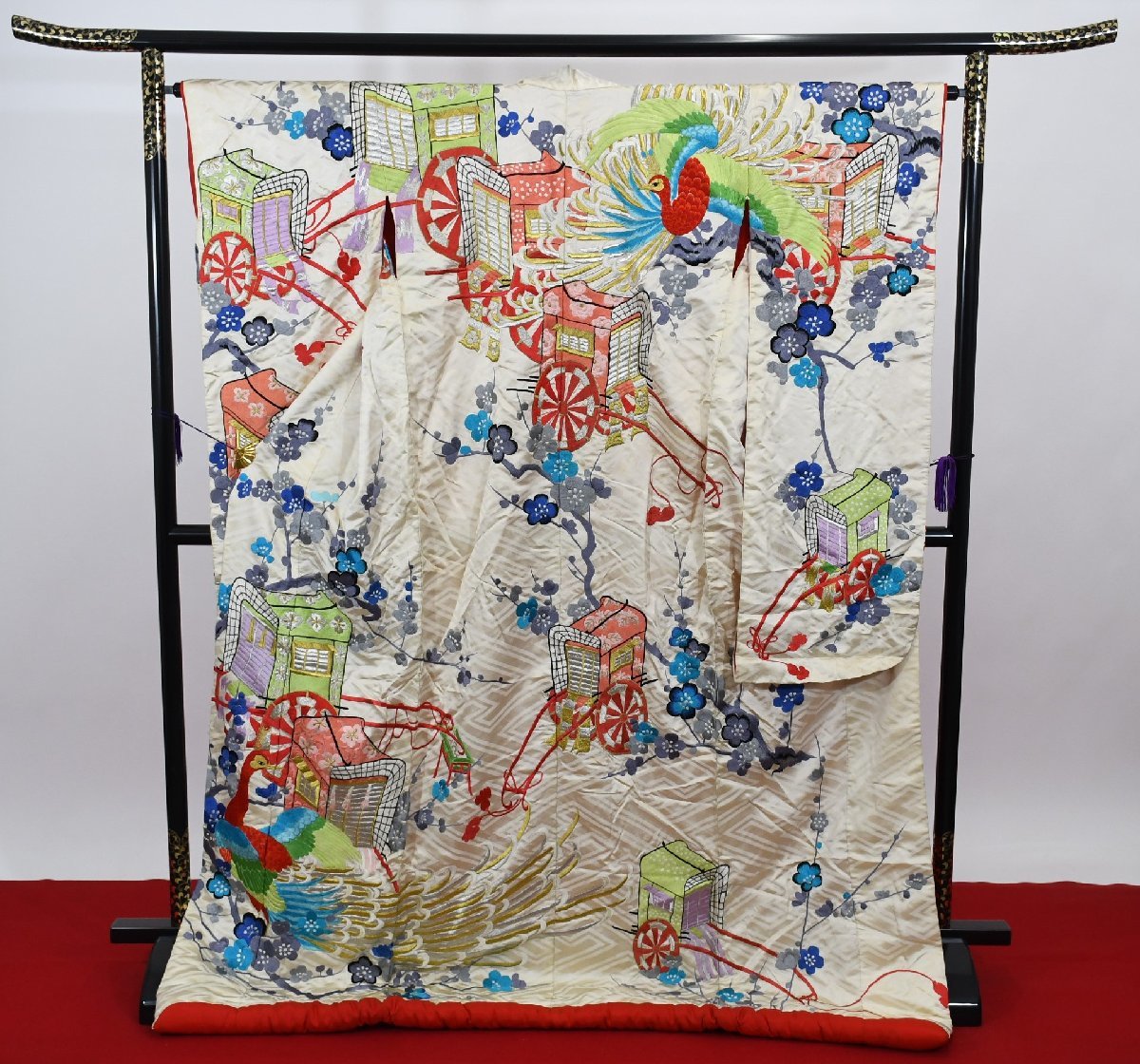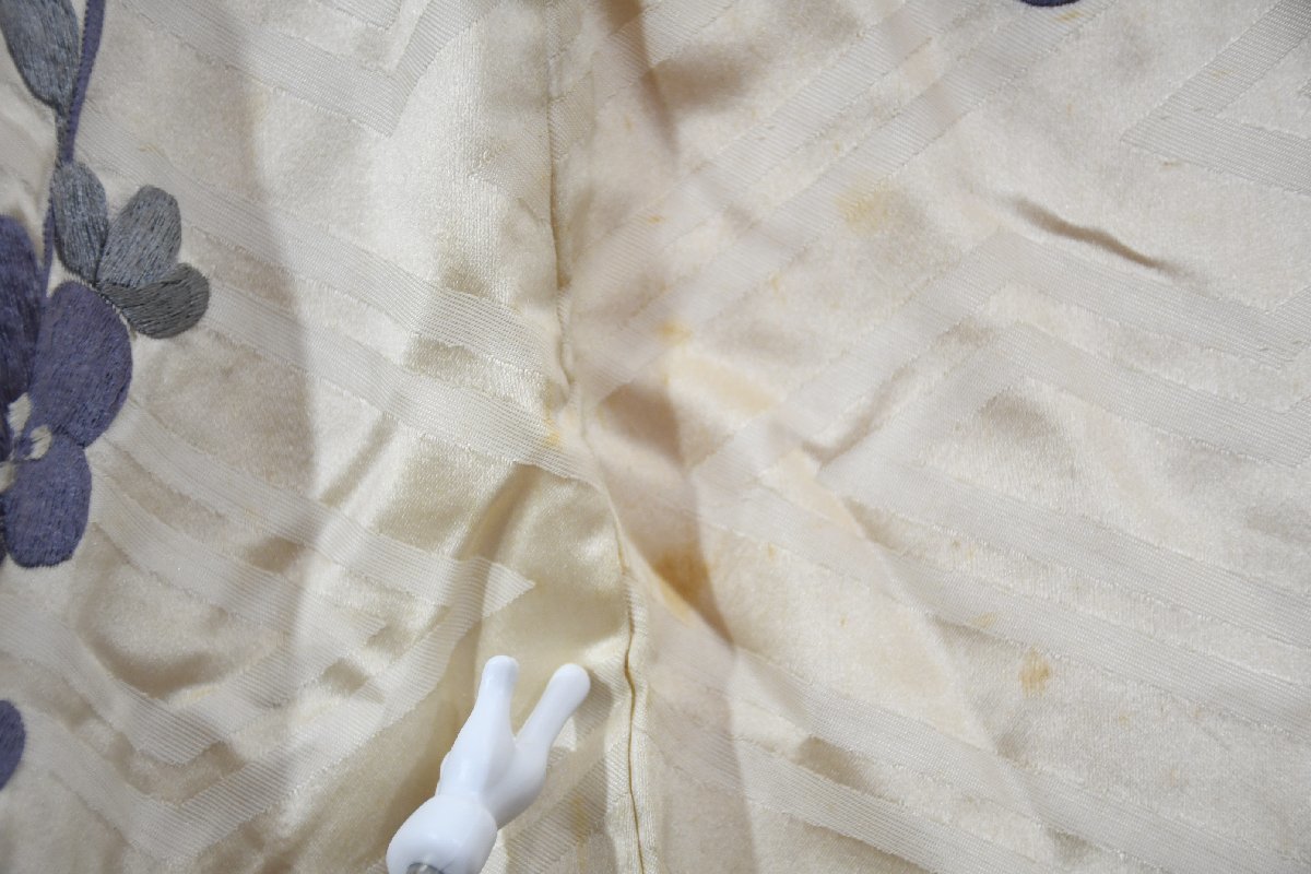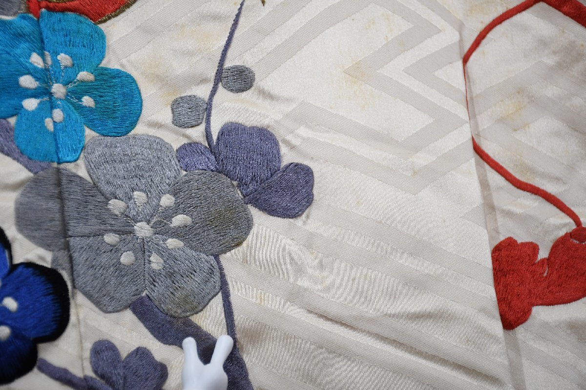 コメント | 衽、前身頃、後ろ、脇付近、袖、衿等にシミ汚れがあります。糸のほどけがあります。新品ではありませんので、中古品という扱いです。少したたみジワがある場合がございます。ご了承の上、ご入札をよろしくお願いいたします。 |