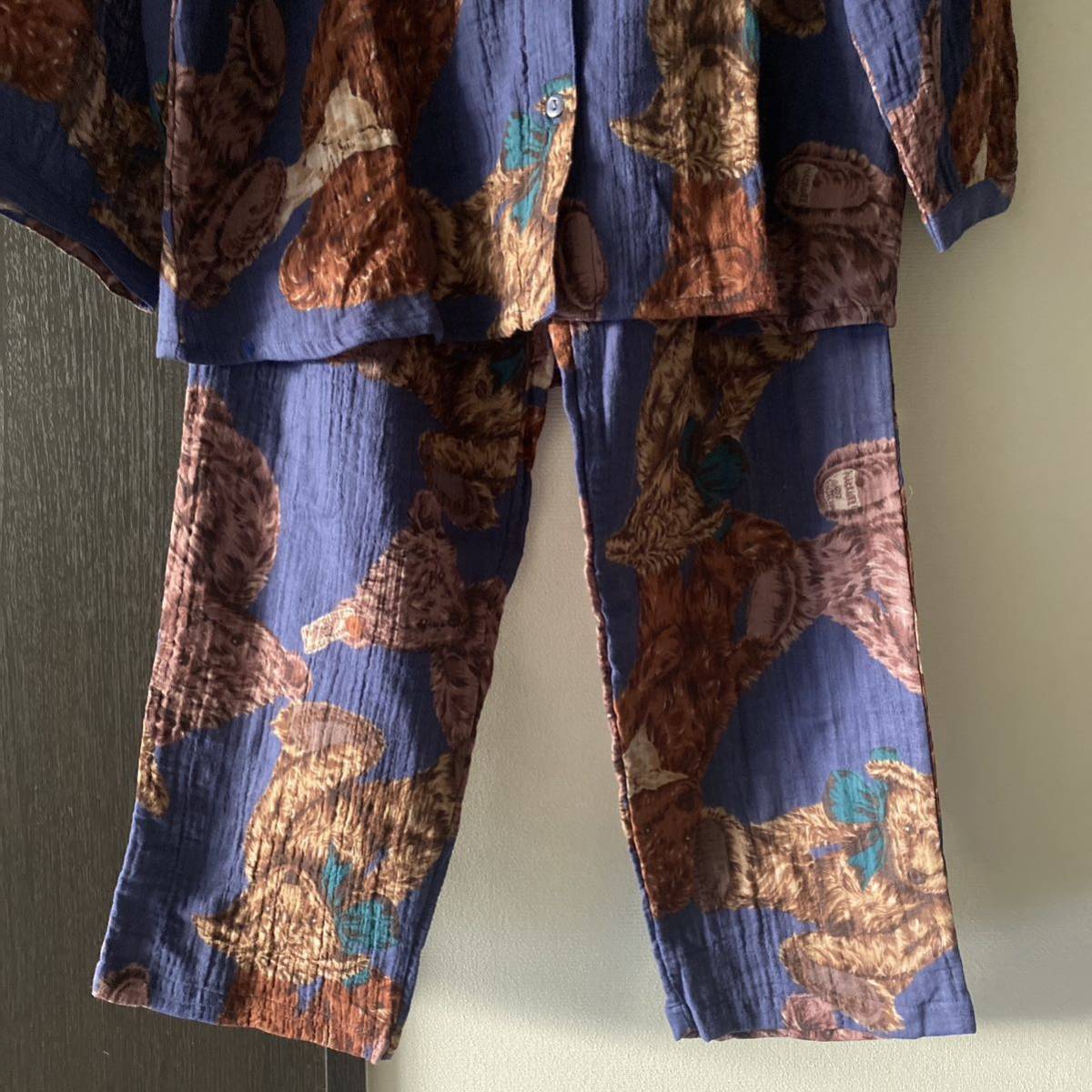 散りばめらたアンティークベアが大人可愛くパジャマには見えないので部屋着にも!