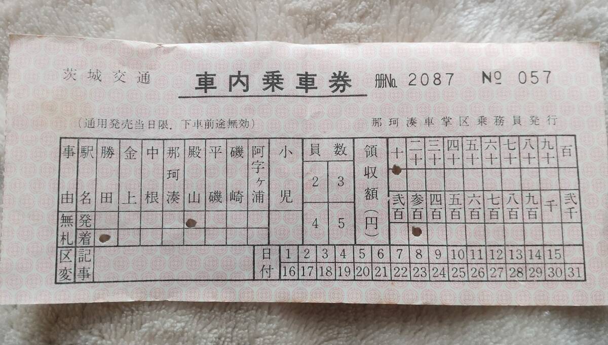 茨城交通 車内乗車券 勝田 殿山 車内補充券 那珂湊車掌区 乗務員発行 現・ひたちなか海浜鉄道 湊線
