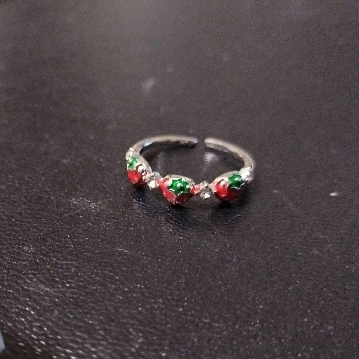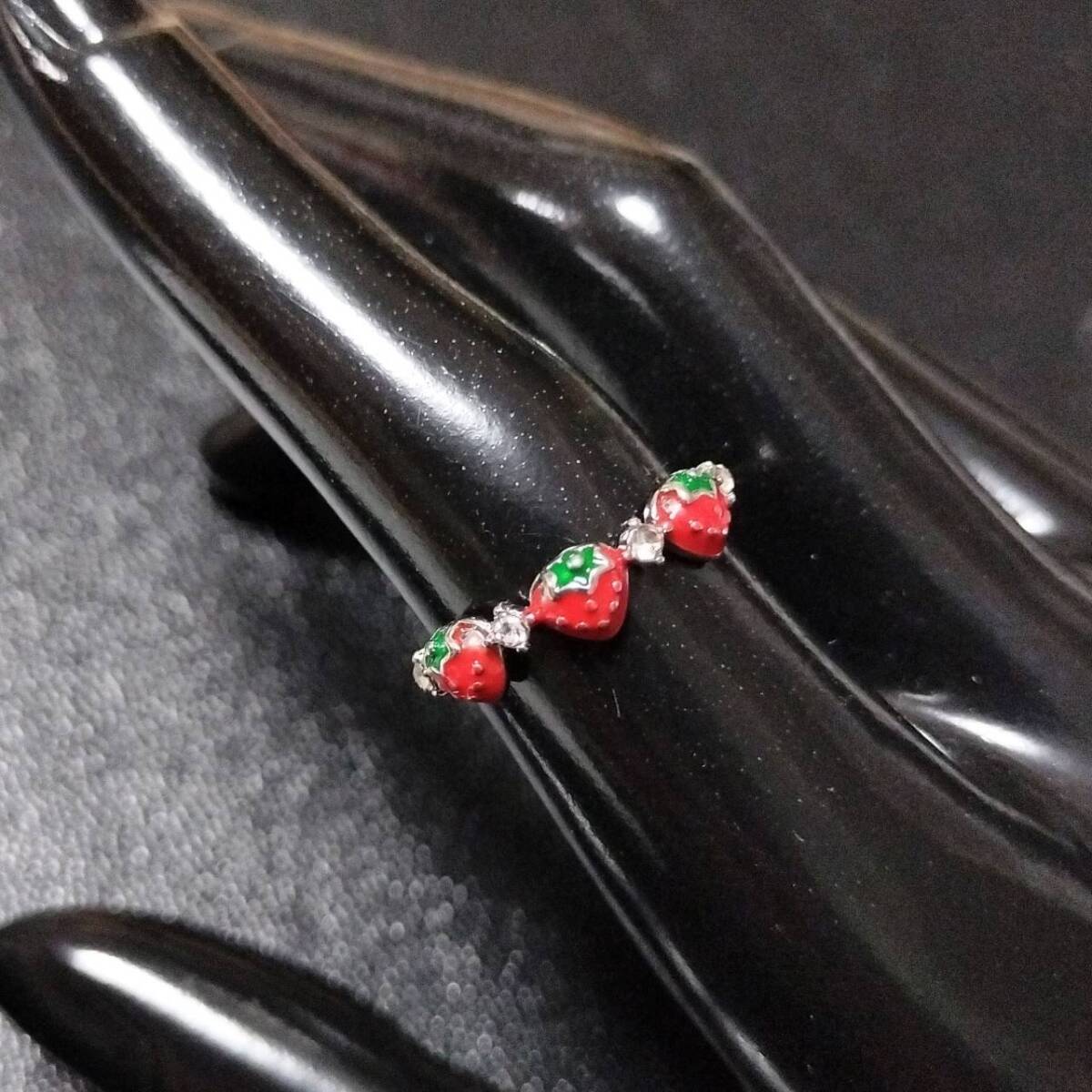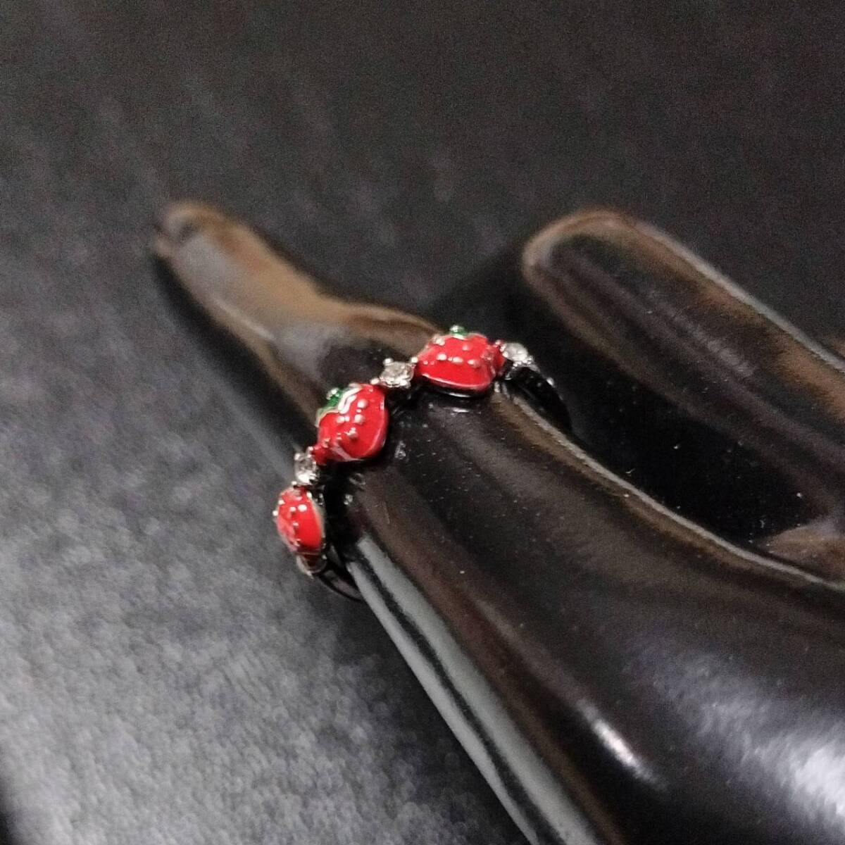 新品未使用 オープンリング 指輪 シルバー 苺 イチゴ ストロベリー cz 赤 レッド 調整可能 レディース 韓国 フリーサイズ 苺 #D188-2