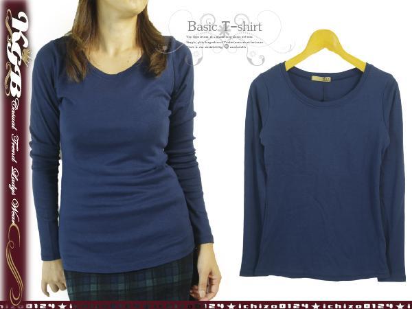 LL ネイビー 長袖Tシャツ ロンT カットソー レディース コットン 綿 定番 無地 ベーシック 新品
