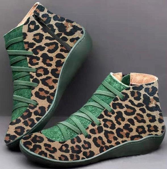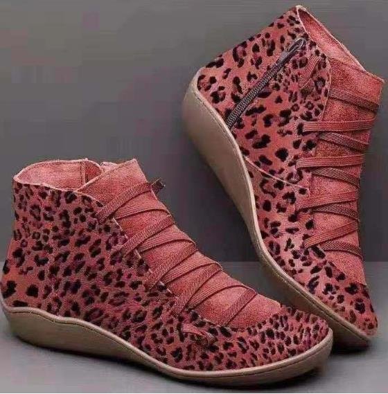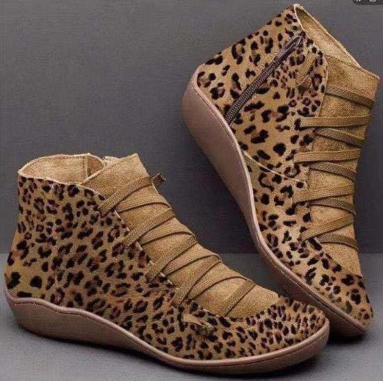 ★レディース 欧米風  コンフォート ショートブーツ カジュアル 豹柄 ブーティ 大きいサイズ 個性的 25.5cm