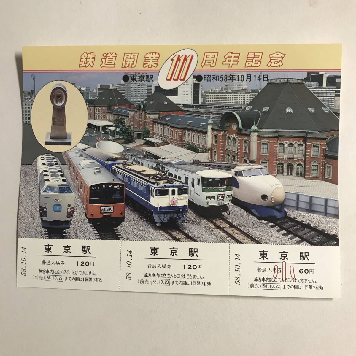 東京駅 / 鉄道開業111周年 記念入場券 昭和58年10月14日 未使用 @S-A-A
