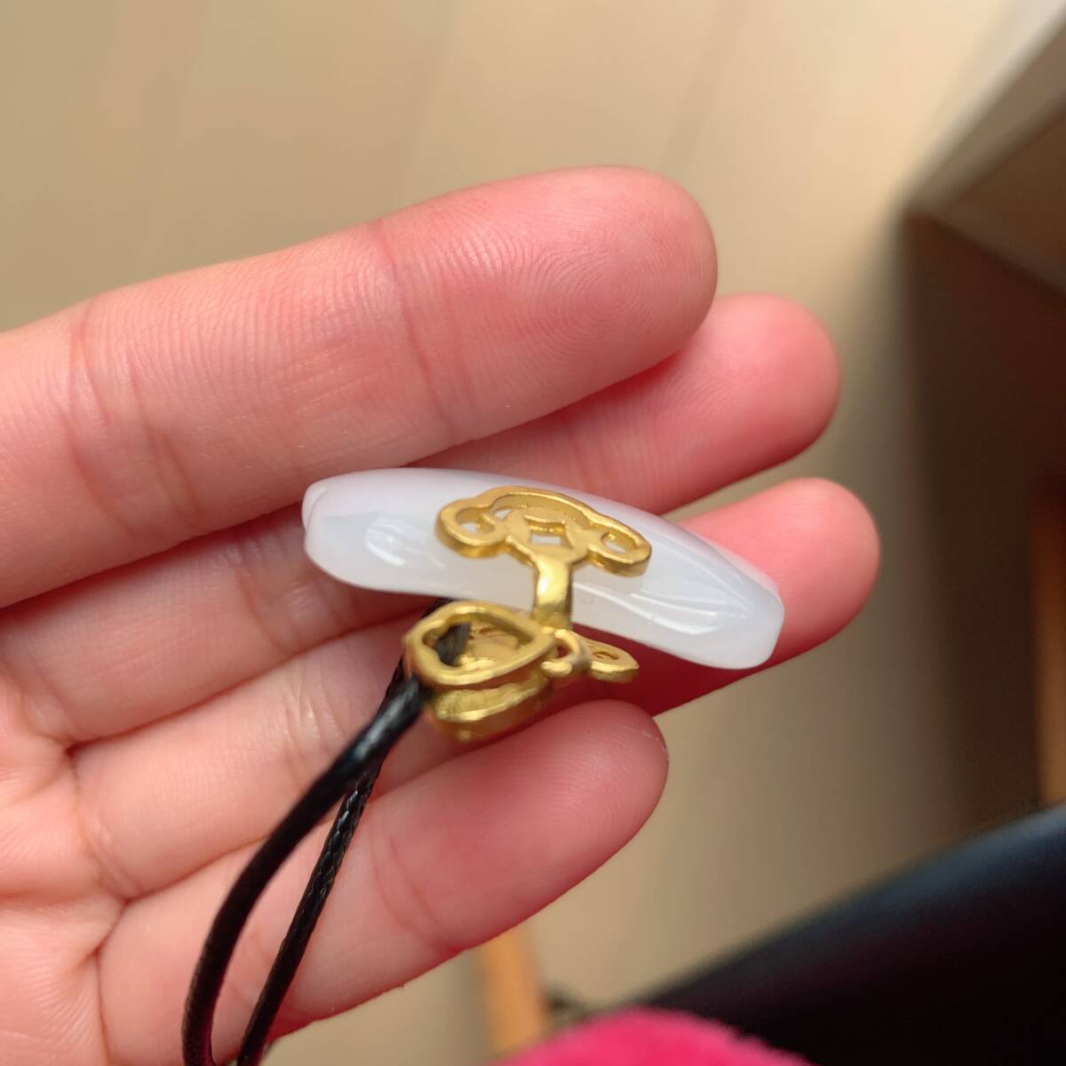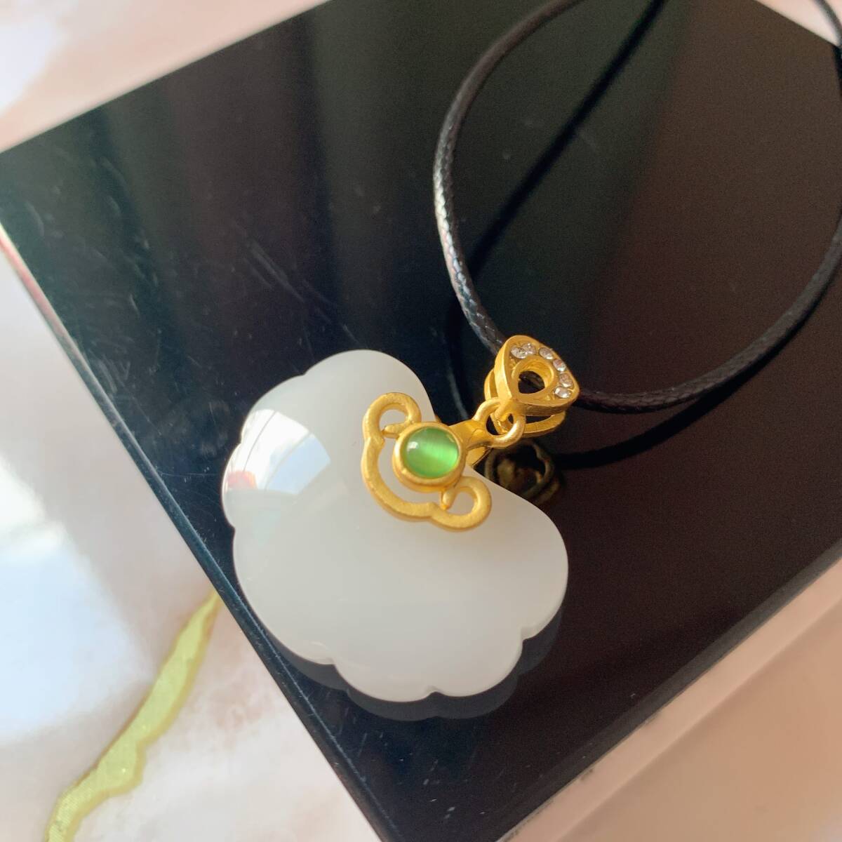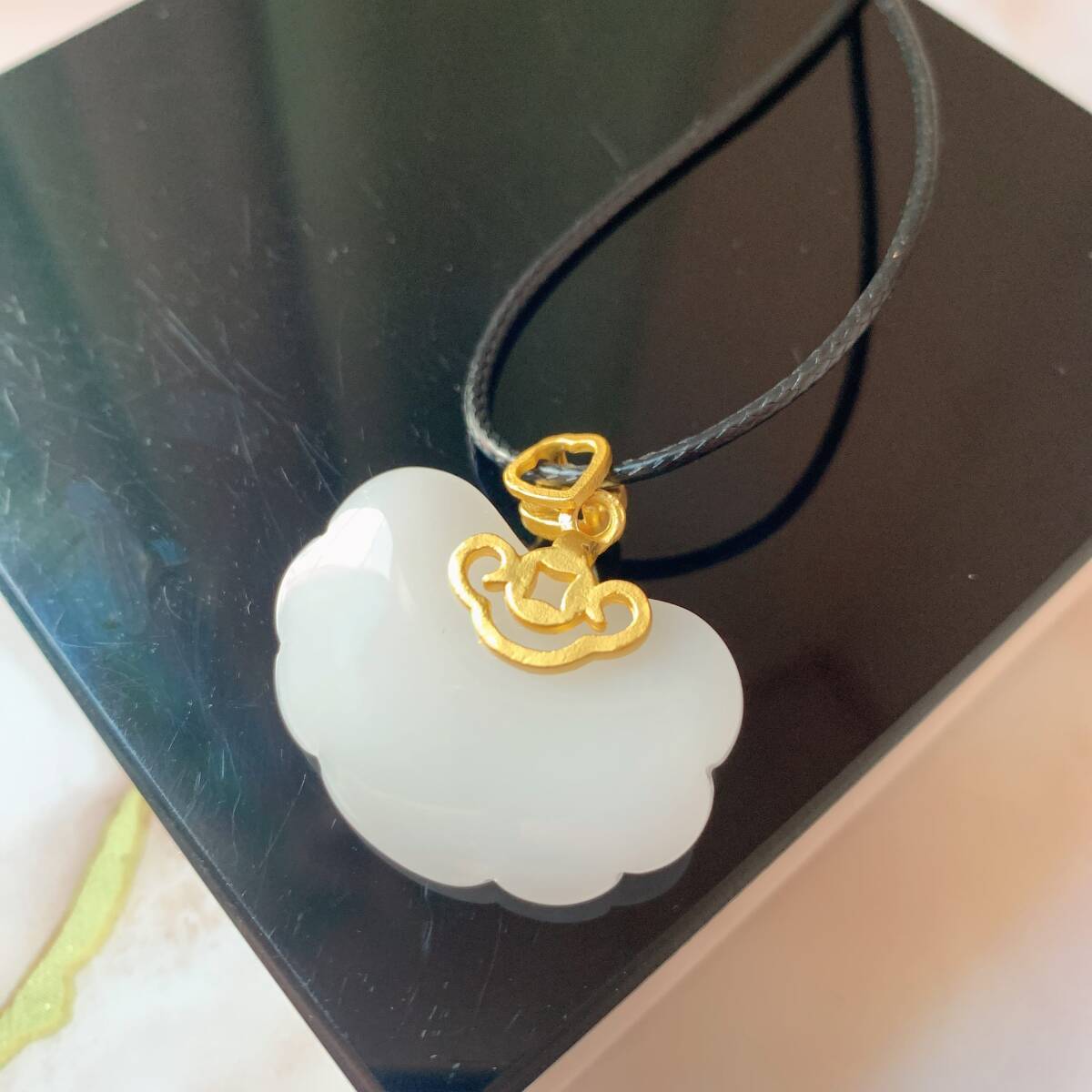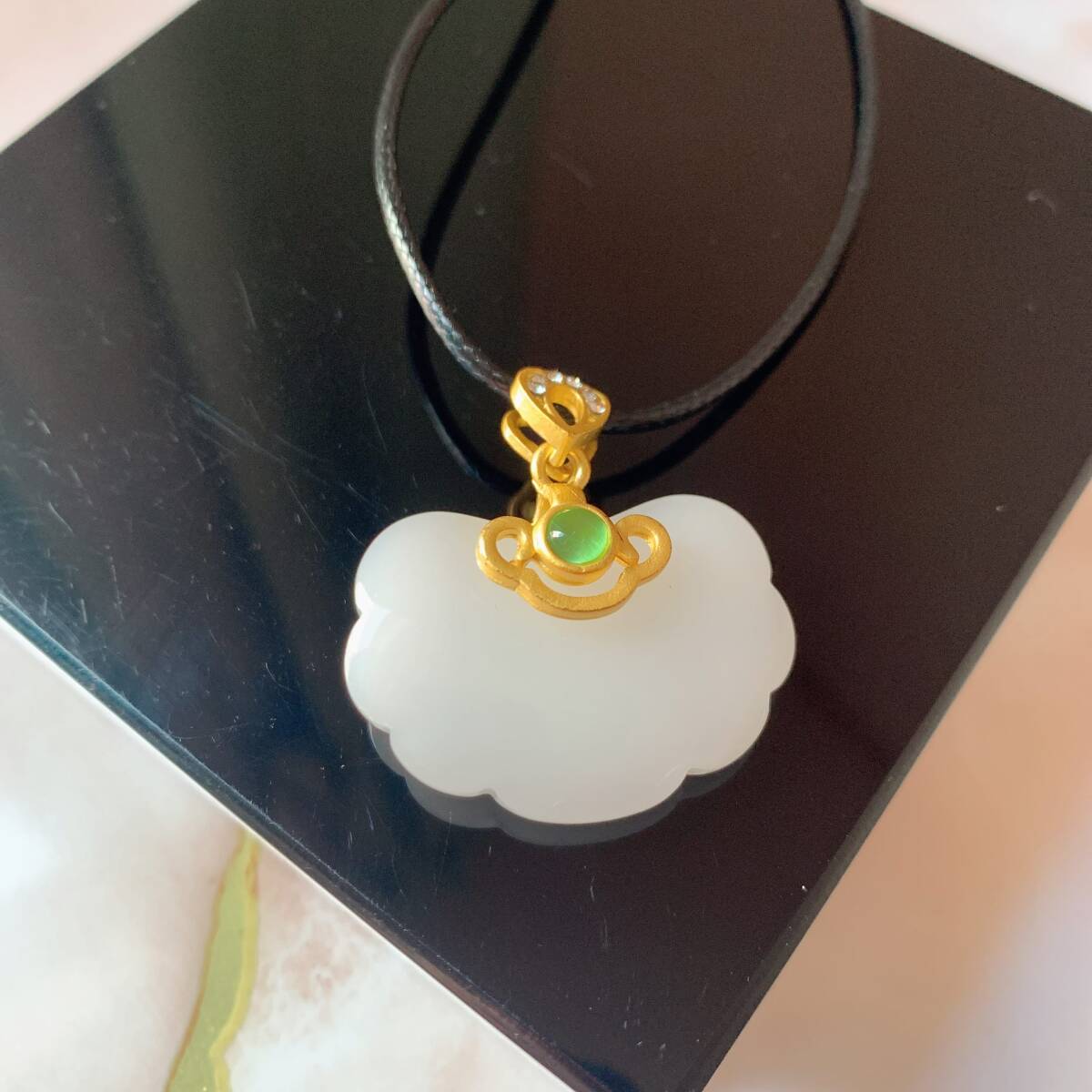 訳あり☆金糸玉・白玉☆天然石☆ネックレスペンダント☆如意錠形☆彫刻☆翡翠・ヒスイ☆ラッピング袋付き☆プレゼントにも 15PR30111