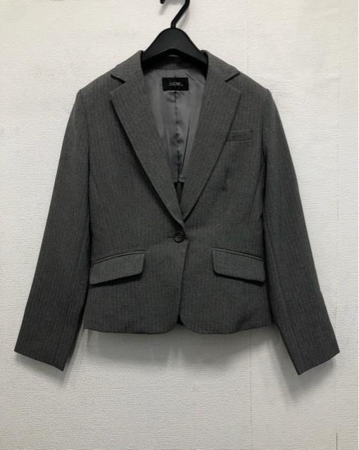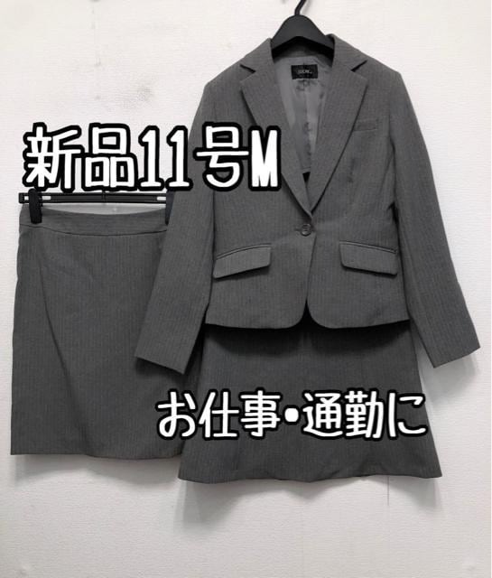 新品☆11号Mグレー系ストライプ柄♪スカート2種付スーツ3点セット☆r696