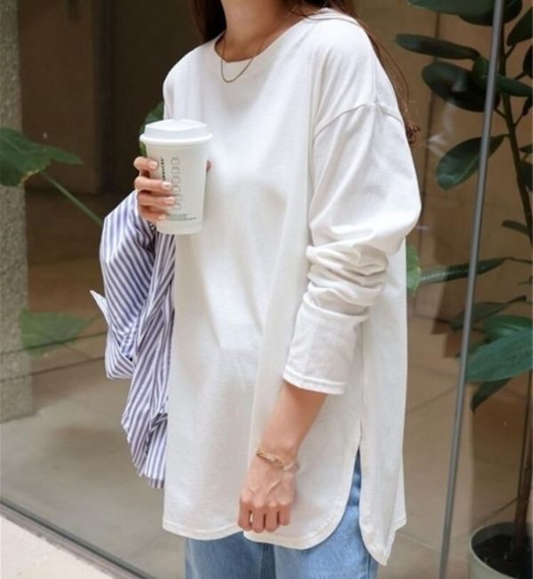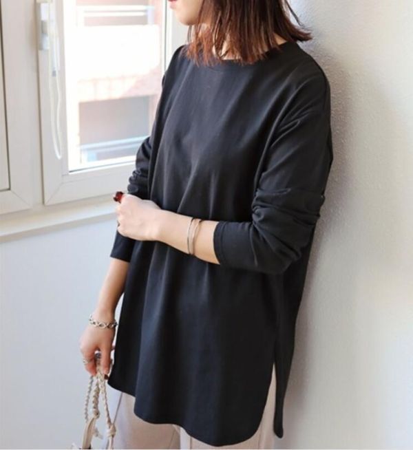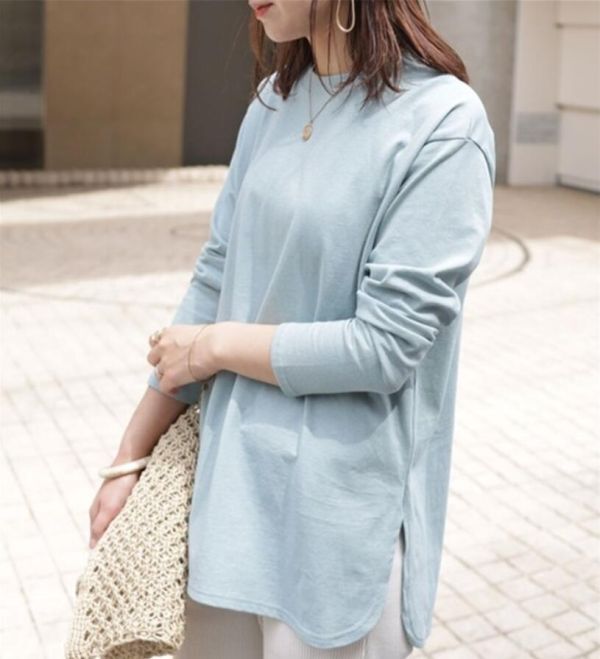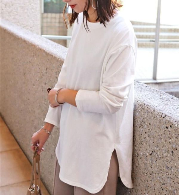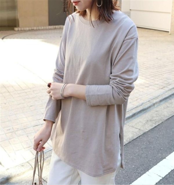 秋新作 上品 ブラウス シャツ おしゃれ シンプル ゆったり 無地 チュニック レディース 長袖 大きいサイズ / カーキ