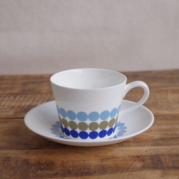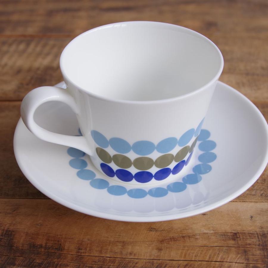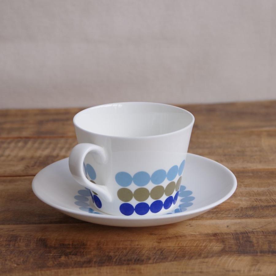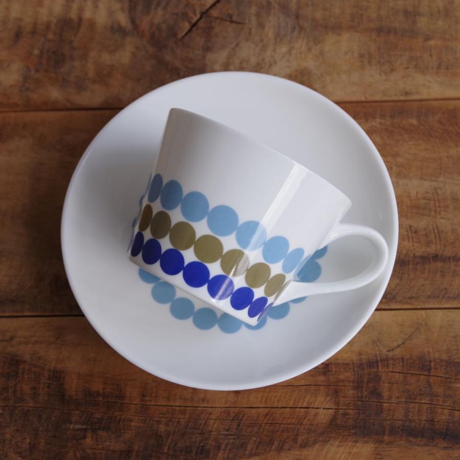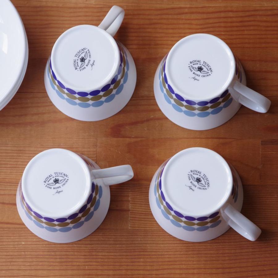 レトロ ポップ 幾何学 水玉 模様 コーヒーカップ&ソーサー ブルー ドット柄 ビンテージ 食器 陶器 #230912-1~4 Royal Tuscan タスカン