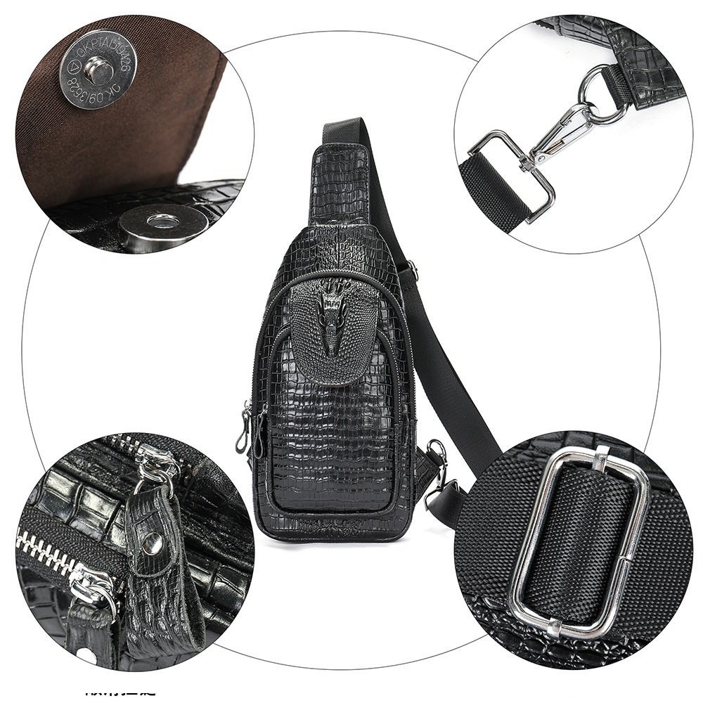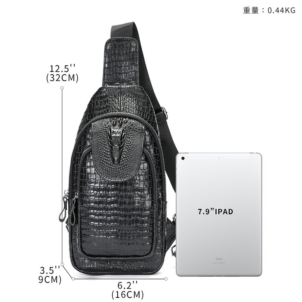 クロコダイル型押し ボディーバッグ 牛革 本革 メンズ レザー ショルダーバッグ 斜めがけ