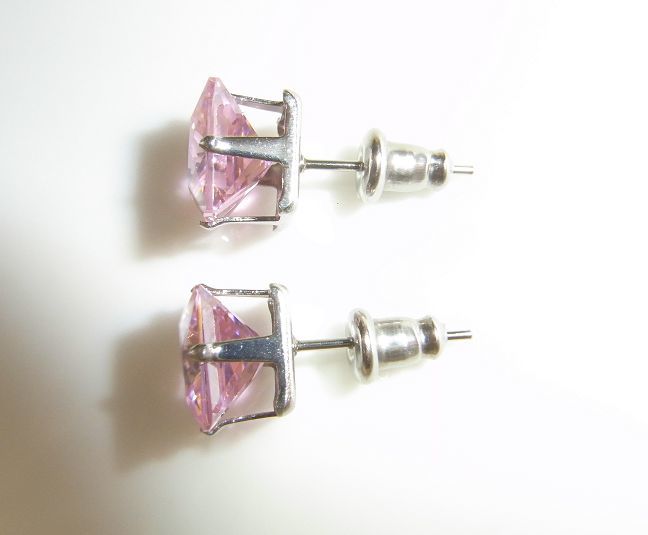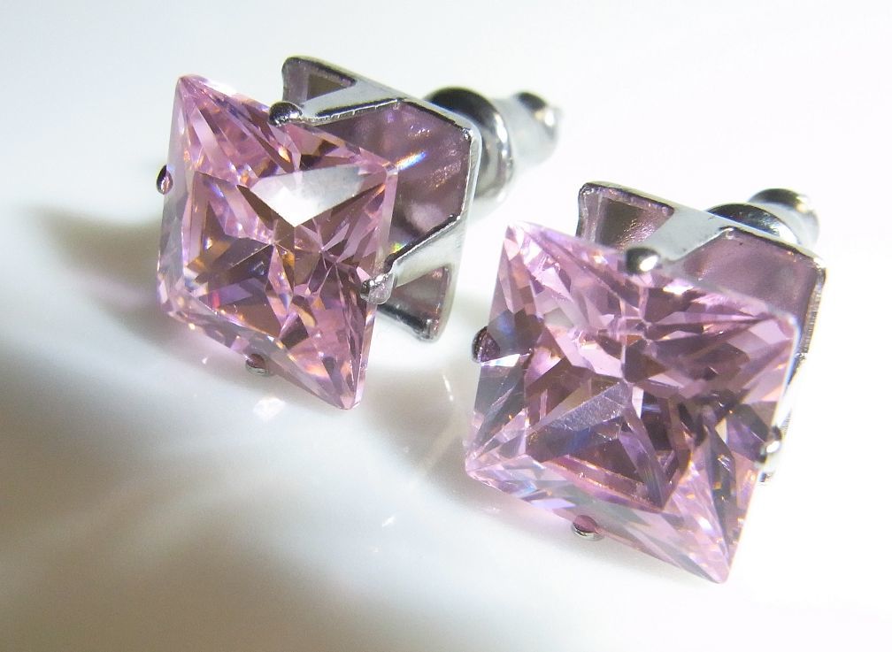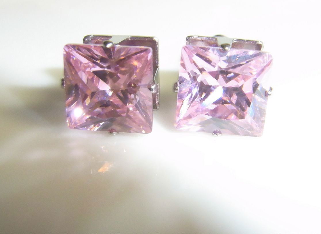 | ◆8ミリ ピンクダイヤ ピンクジルコニア ピアス ステンレス製 プリンセスカット◆ | |||