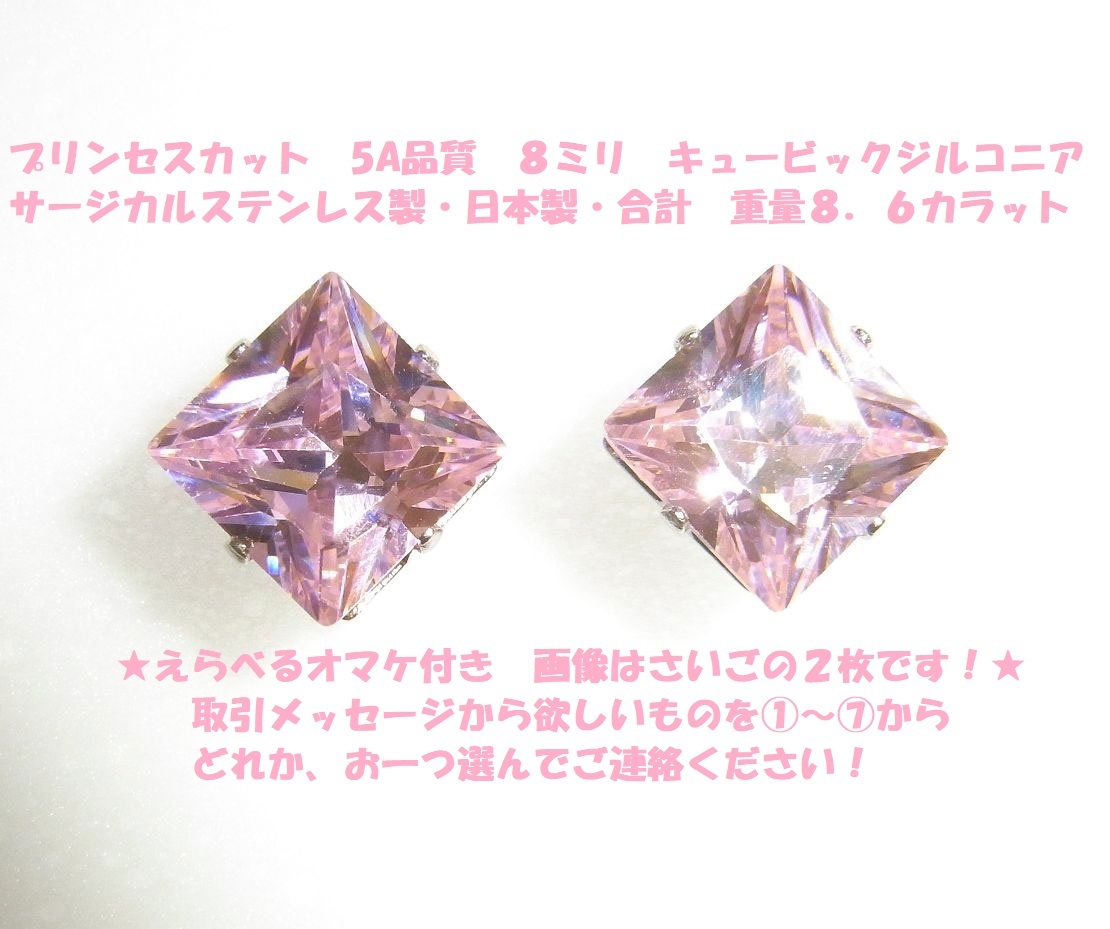 ◆商品動画◆こちらの動画になります。 ★こちらは送料を節約してクリックポスト 発送になります。 ★ジュエリーケース無し、プチプチのみの 簡易包装になります、良いものを安く。 ☆こちらはステンレス製ピアスです。 ★プレゼントキャンペーン中! さいごの2枚の画像です、①~⑦から お一つ選んで、取引メッセージから欲しいモノを ご連絡くださいませ。 ★大粒 重量 4.3カラットの ピンク カラーの プリンセスカット 5A品質 の キュービックジルコニア★ 約8ミリの大粒です!! 5A品質ですので、カットも良く 輝きも、美しいです! 両耳で 約8.6カラットの重量です! ★天然ピンクダイヤモンドですと 8ミリは、1個で、3カラット相当です! 2個で6カラット相当! (ダイヤよりもジルコニアのほうが 重たい宝石のためです) ★えらべるオマケ①~⑦ プレゼントキャンペーン中! ★①~⑦どれか1個おえらびいただけます。 取引メッセージから、ご希望の番号を お知らせください。 ★入手困難品、通常のホワイトジルコニアの1.2倍 程度の原価のため、あまり出回っておりません。 私の知る限り8ミリの大粒ピアスは、 あまり売っていません! ★5A品質 8ミリ プリンセスカット 激レア★ ※売っていても石のグレードが低く、3A 品質程度のモノ が多く、当店の商品の方が美しいストーンです! ★人造宝石は人類の英知の結晶です! ★こだわりの品質★選び抜かれた材質★ かゆくなりにくい サージカルステンレス製 ★食器用中性洗剤で水洗いできます。 ☆メッキではないので、長くお使いいただけます。 ピンクカラー キュービックジルコニアの大きさ 約8ミリ 合計8.6カラット(4.3カラット 2個) ピアスの大きさ 約10ミリ × 18ミリ ピアスの重量 両方で 約2.60グラム 日本製 | |||