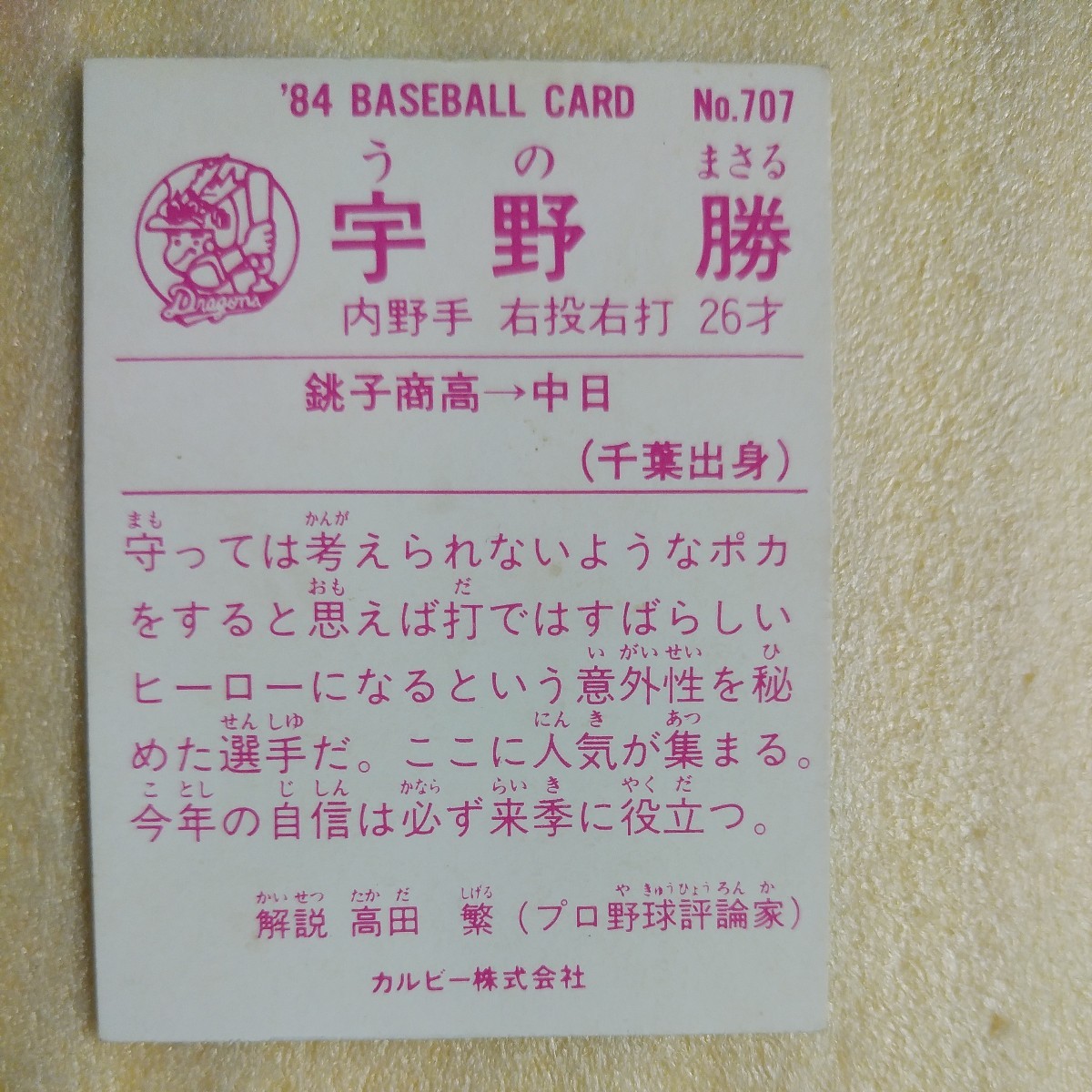 1984カルビー野球カード№707宇野勝(中日)最多本塁打