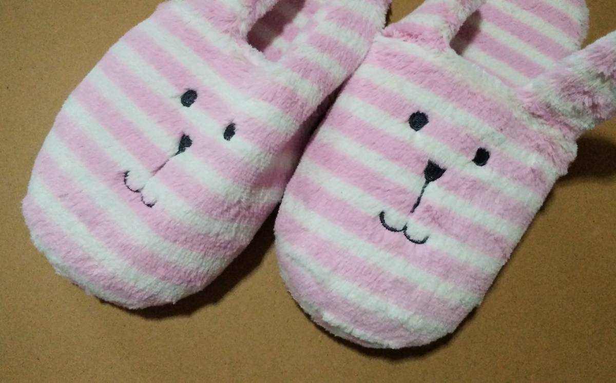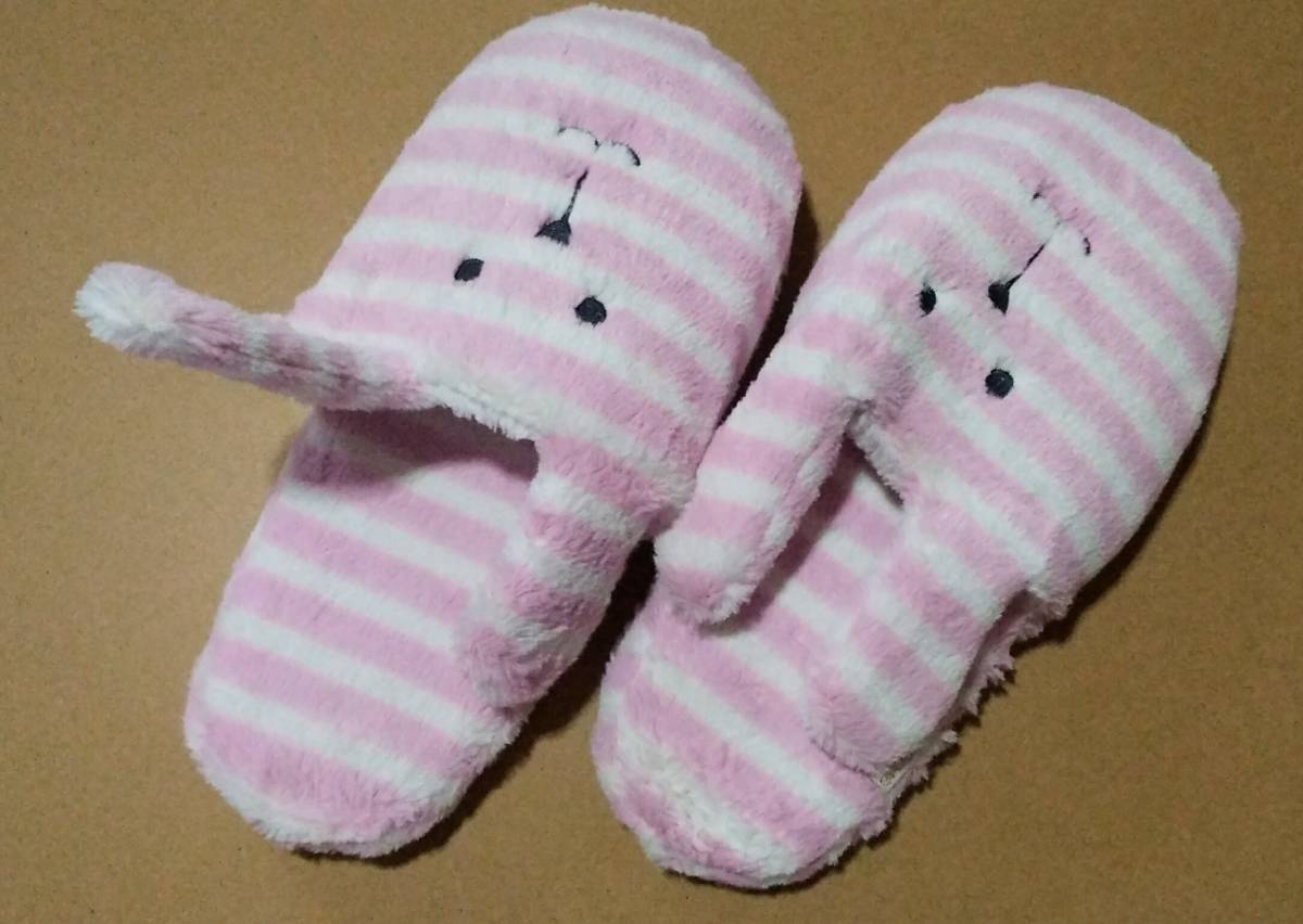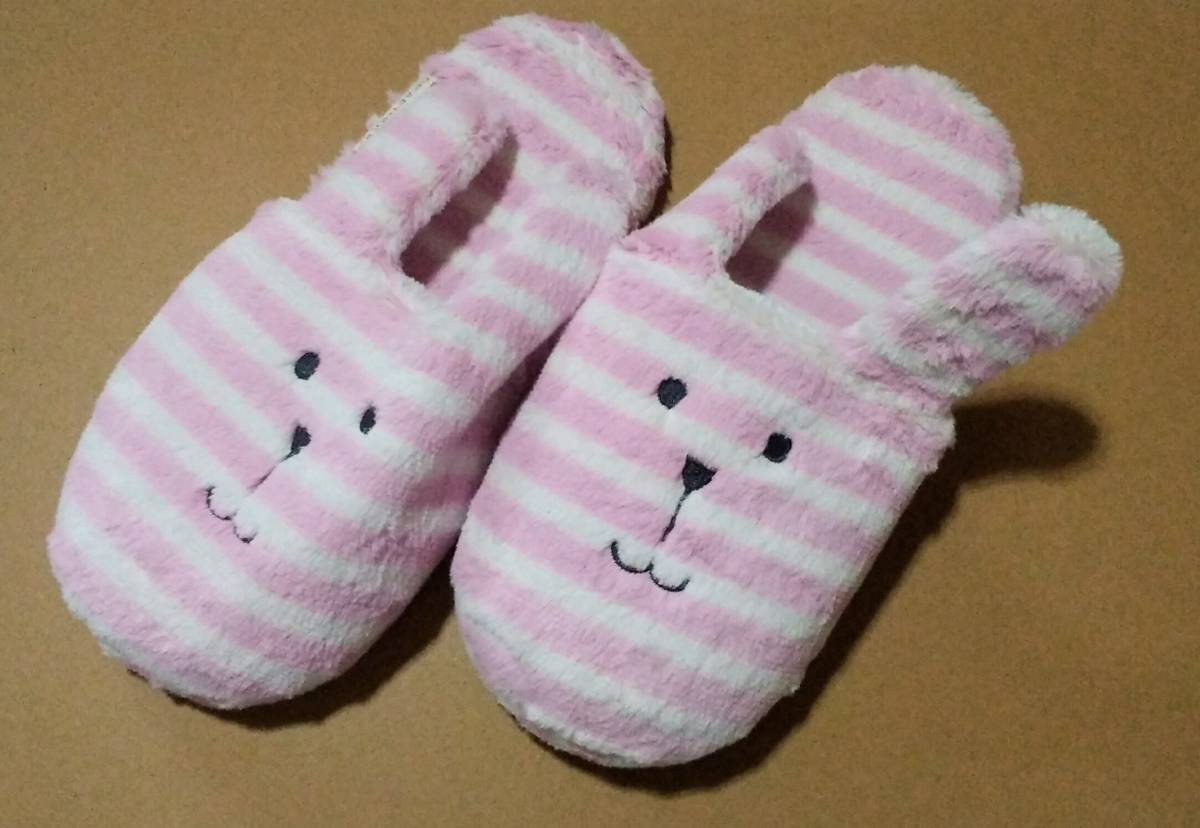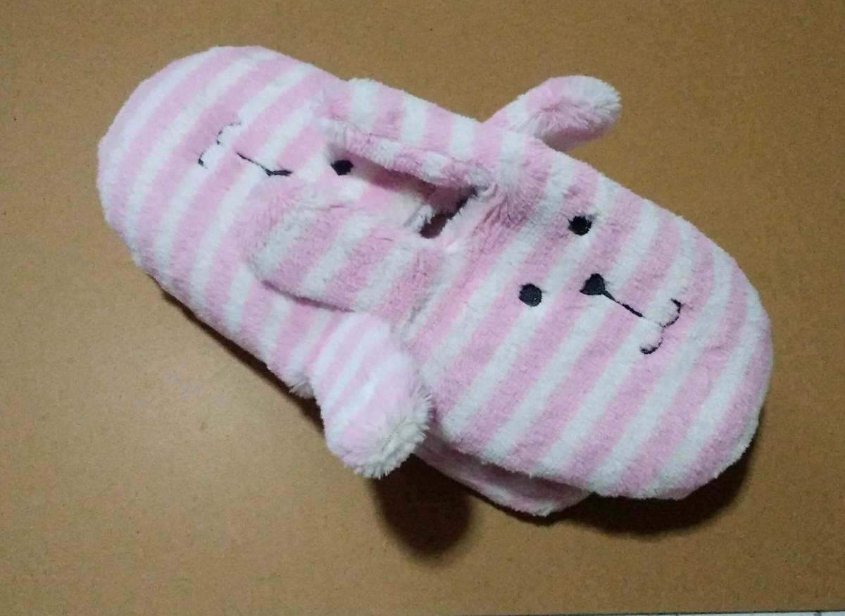 クラフトホリックピンクストライプ柄うさぎのスリッパです。