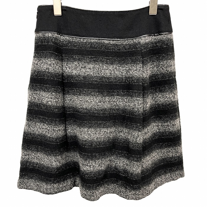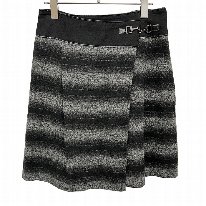 | 商品タイトル | UNTITLED 起毛 スカート ラップスカート風 ボーダー 裏地付 毛×ナイロン×キュプラ×ポリ 3 黒 ×グレー(ラメ糸:シルバー) レディース |