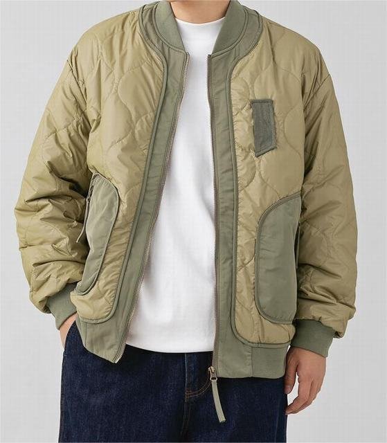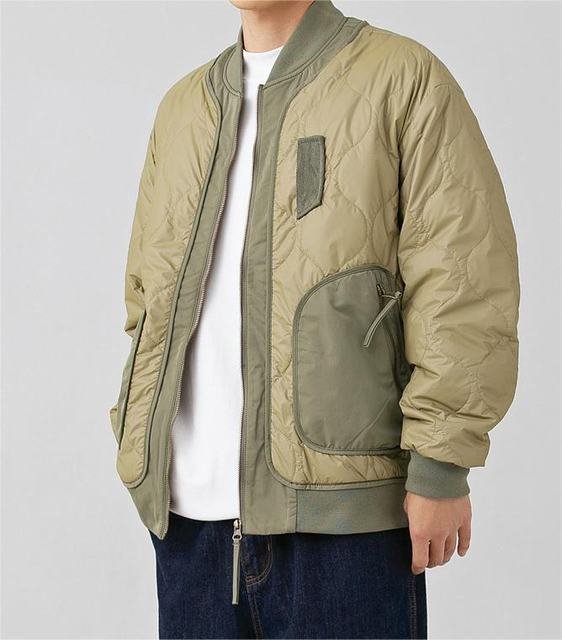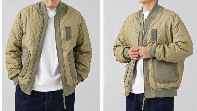 ■素材:ポリエステル、その他 表キルトでエッジの利いた、ビッグシルエットのフェイクダウンミリタリージャケットです。 デザインはそのままで、現代的にリデザインしたフライトジャケット 膨らみのある中綿が防寒性が高く、さっと羽織るのに便利なアイテムです! 両サイドのビッグポケットが収納に優れると同時に、程良くカジュアルな印象へと導きます。 オニオンキルト構造が空気の層を作り、高い断熱性能を発揮。 保温性抜群だけでなくオシャレで軽い着心地の一着 デニムやチノと合わせて、シャツやパーカーとも合わせられるのでさっと羽織にも便利です。 カジュアル、ストリート、アウトドア、スタイルを問わない万能アイテム! お手入れ:水洗い可 生地の厚さ:厚手 シルエット:ややゆったり 伸縮性:なし 裏地:あり 【サイズ】 cm サイズ バスト 着丈 肩幅 袖丈 M 116 66.5 53 59 L 120 68 54 60 XL 124 69.5 55 61 2XL 128 71 56 62 3XL 132 72.5 57 63 4XL 136 73.5 58 64