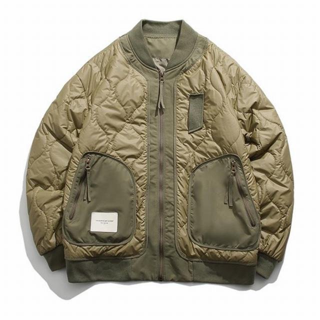 キルティング 中綿フライトジャケット 羽織 ビッグポケット 軽い メンズ 防寒 キャンプ 春秋冬 カーキ 3XL