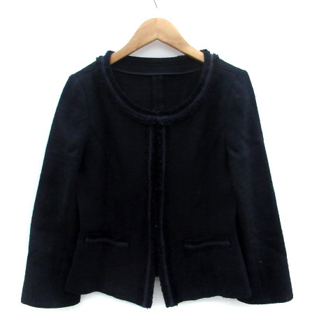 ノーリーズ Nolley's ノーカラージャケット ミドル丈 40 紺 ネイビー /HO7 レディース