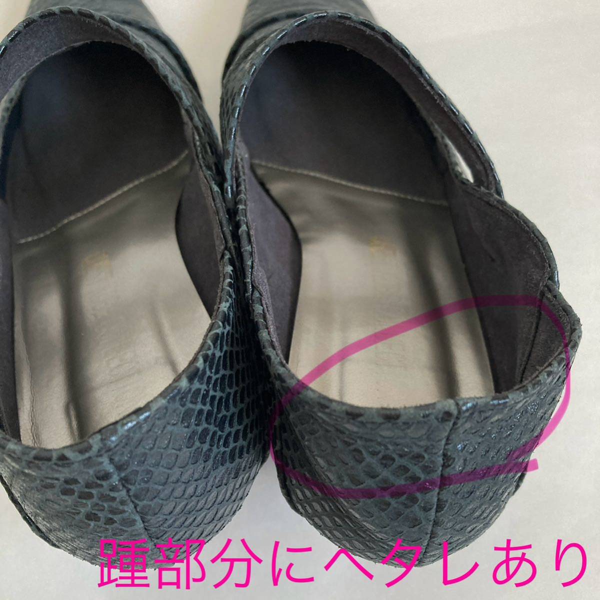 踵に若干の型崩れヨレあり。
