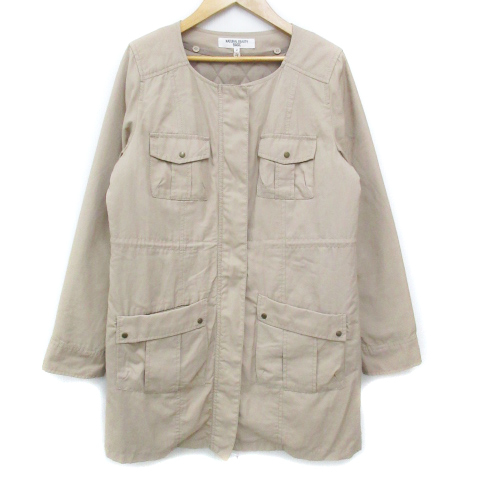 ナチュラルビューティーベーシック ミリタリージャケット ノーカラージャケット ロング丈 ライナー付き M ベージュ /FF6 レディース