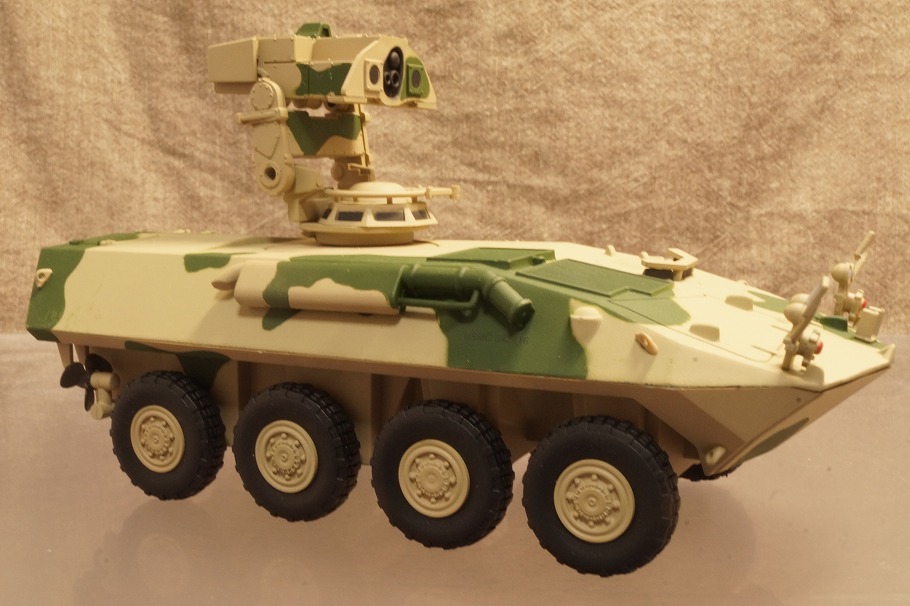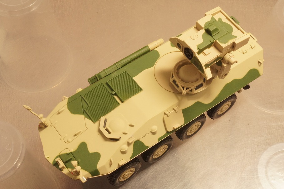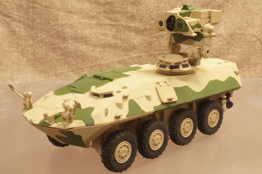 ★アメリカ 歩兵戦闘車 LAV-AT 1/43 (Lav 25 Piranha Tua US 2003) です。 LAV-25はアメリカ海兵隊が運用する水陸両用の歩兵戦闘車。 LAV-ATはBGM-71 TOW対戦車ミサイルの2連装ランチャーを装備した対戦車車両。 スケール:1/43 サイズ:全長 約14.5cm 材質はダイキャストとプラスチックです。 ※撮影の為開封済み | |