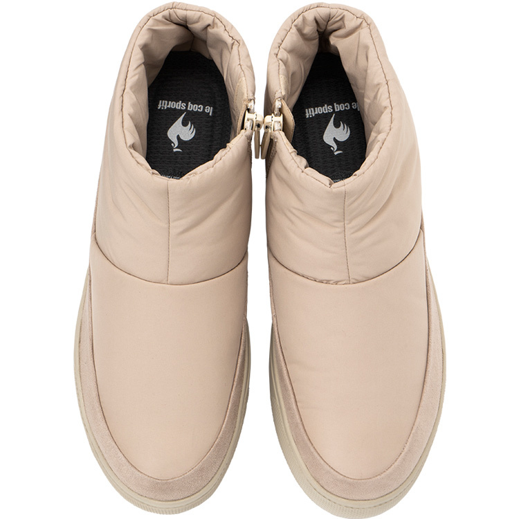 厚底のふわふかの足入れで、細身でエレガントな印象のアーバンウィンターブーツ。厚底ながら、クッション性のある軽量ソールを使用しています。ショート丈で、着脱のしやすさはもちろんのこと、パンツインやフレアスカートなど秋口からの幅広いスタイリングにマッチし、使い勝手の良いモデルです。雨や雪でも履ける防水設計で、インソールには発熱蓄熱素材「ベルセラ」を採用し、足元の暖かさにも配慮しました。デザインと機能を両立したモデルです。