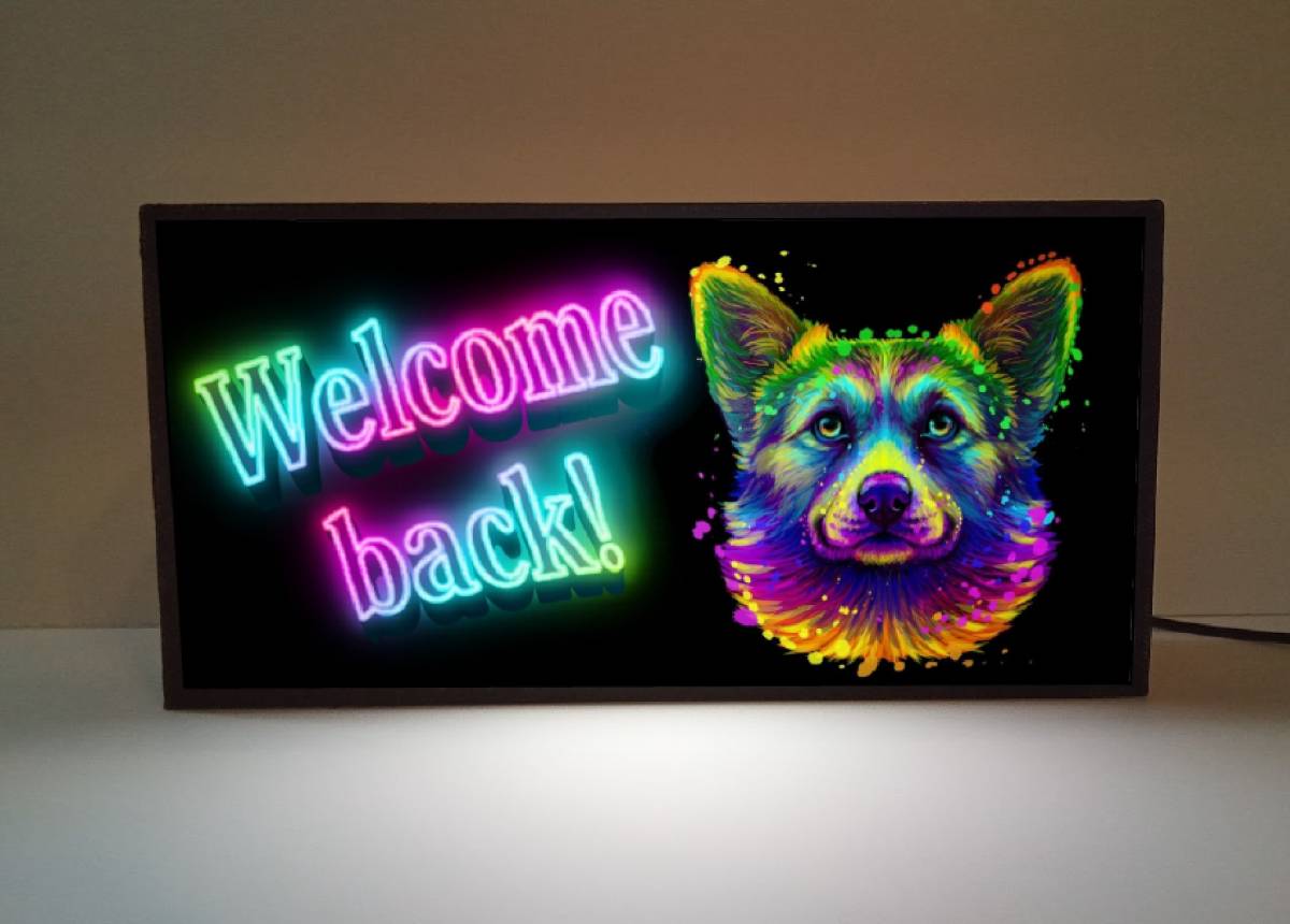 店舗、自宅の窓際・カウンター・棚・テーブルやちょっとしたスペース、車内・ガレージ・キッチンカー・屋台・イベント・パーティーなどに 邪魔にならず丁度良い大きさの【コーギー】ミニチュア電飾看板です★ 文字変更無料、プレゼントにも大変好評頂いております★ ◆サイズ◆縦10センチ×横20センチ×奥行き5センチ ◆材質◆本体(PLAプラスチック製)・表示面(IJバックライト発光フィルム貼り) ◆電源◆USB供給電源(家庭用コンセントコネクタ付き) 〇他サイズ〇 ●基本サイズ縦10センチ×横20センチ (3D造形BOX黒本体) ●Mサイズ 150mm×300mm ●LLサイズ 300mm×600mm ●3Lサイズ 400mm×800mm ◆オリジナルデザイン・オーダーも承っておりますので、お気軽にお問い合わせください。 自社製造製品 アメリカン雑貨 犬 いぬ イヌ DOG ワンちゃん ドッグカフェ ドッグラン おかえり インテリア雑貨 ネオンベクター ライト 照明 LED 看板 置物